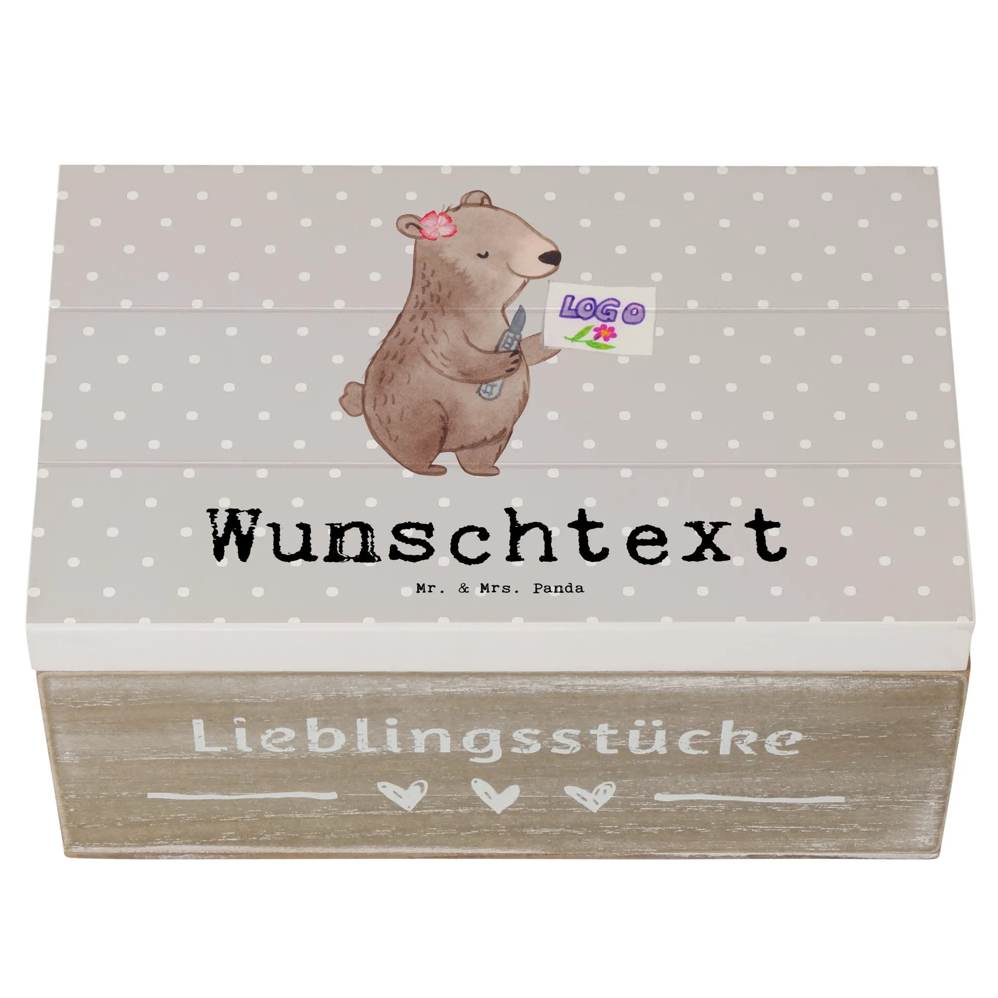 Die personalisierte Holzkiste "Werbetechnikerin mit Herz" von Mr. & Mrs. Panda ist das perfekte Geschenk für kreative Seelen, die das Herz am richtigen Fleck haben! Mit ihrem liebevoll gestalteten Motiv mit dem süßen Bären, der kreativ mit einer Schere spielt, strahlt diese Kiste einfach Charme und Wärme aus. Egal, ob Du sie zur Feier eines Jubiläums, für den Berufsabschied oder einfach als liebevolle Aufmerksamkeit für eine tolle Kollegin schenkst, diese Kiste wird mit Sicherheit für ein Lächeln sorgen!
