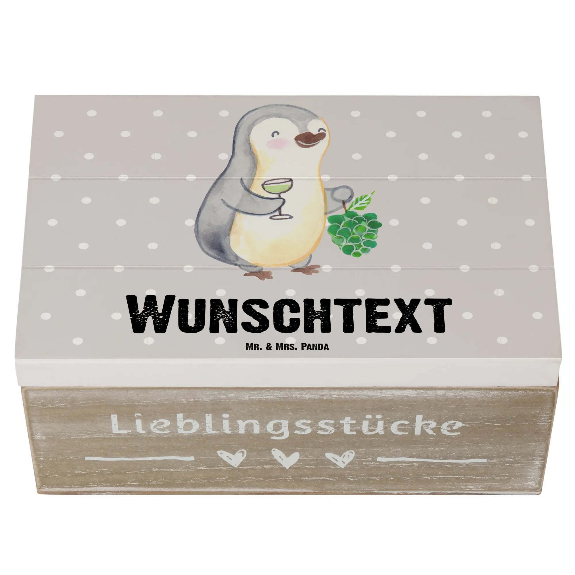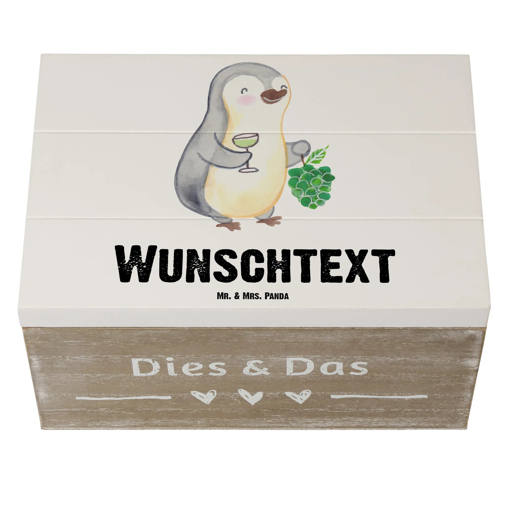 Entdecke die personalisierte Holzkiste 'Winzer mit Herz' von Mr. & Mrs. Panda! Diese zauberhafte Kiste ist nicht nur ein praktischer Aufbewahrungsort für deine wertvollen Erinnerungen, sondern auch ein liebevolles Geschenk für alle Weinliebhaber und Winzer. Mit einem fröhlichen Pinguin, der Weintrauben in der einen Hand und ein gefülltes Glas Wein in der anderen hält, bringt sie ein Lächeln in jedes Zuhause.