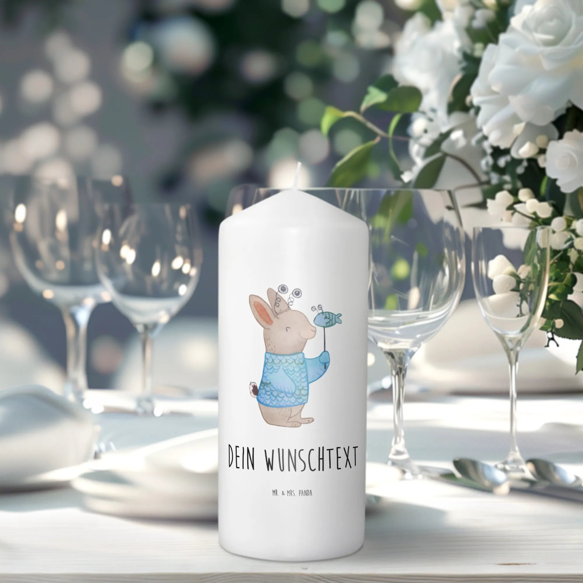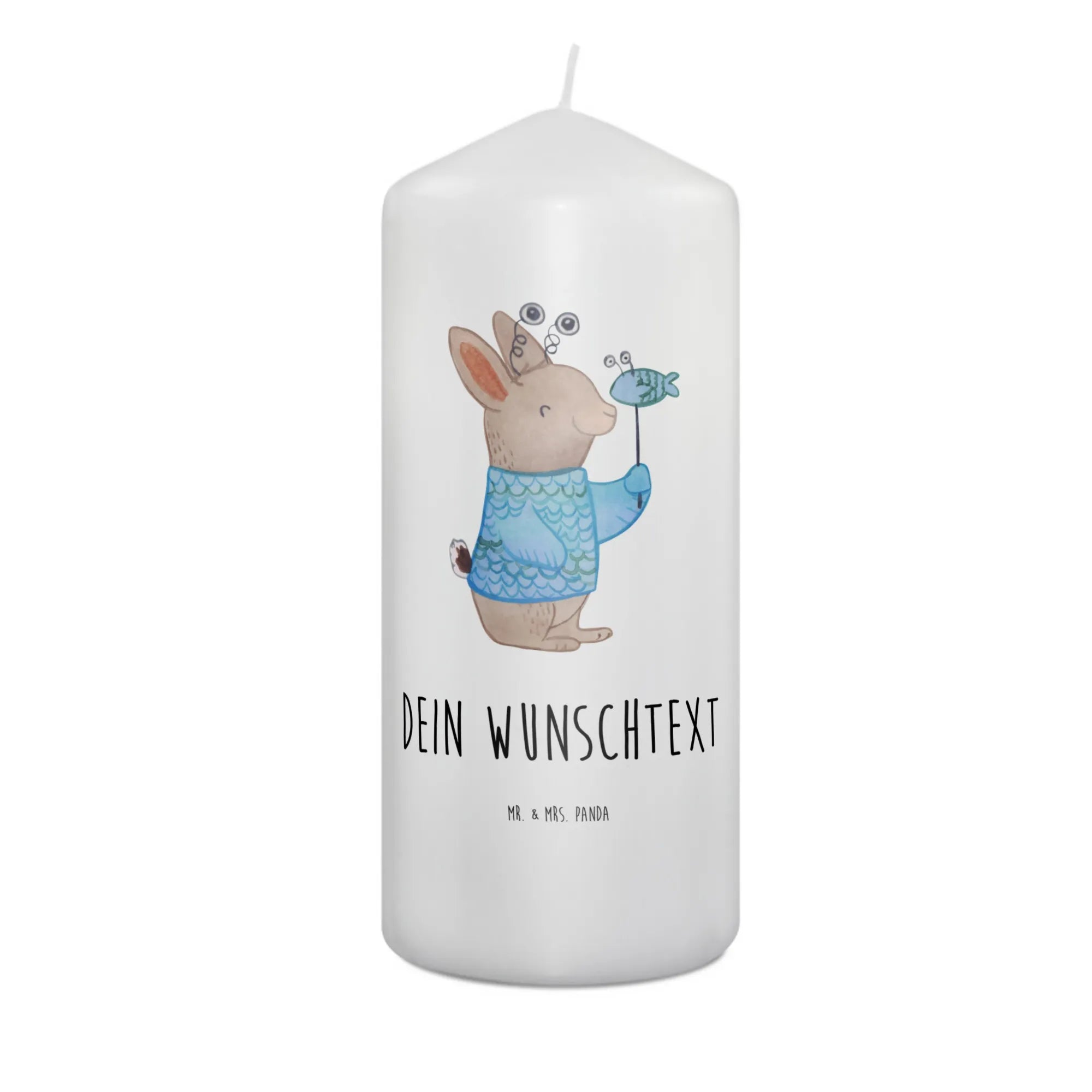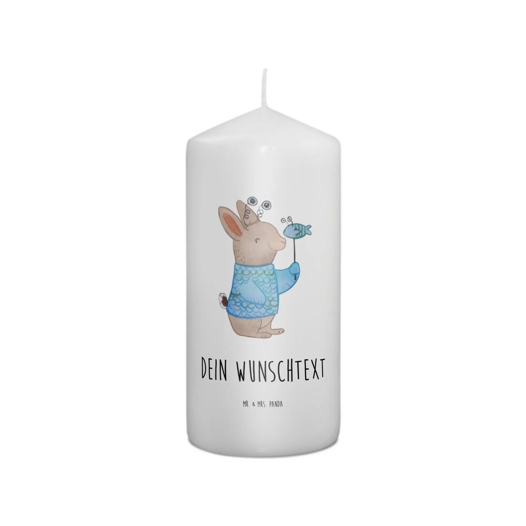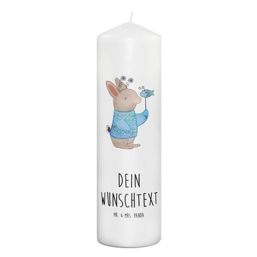 Die Kerze wird individuell mit deinem Wunschnamen oder Wunschtext bedruckt und sorgt mit ihrem zärtlichen Design für eine fröhliche Atmosphäre. Das Motiv zeigt einen entzückenden Hase in einem Fischkostüm, der den Charakter des Sternzeichens Fische auf spielerische Weise verkörpert. Mit dem Slogan "Fische-Power: Tief wie der Ozean, frei wie der Fluss." bringt diese Kerze die Eigenschaften des Sternzeichens perfekt zur Geltung.