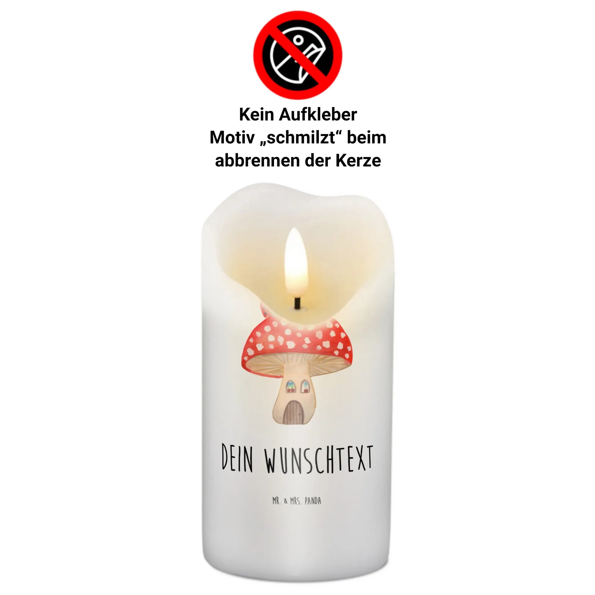 Die personalisierte Kerze mit dem fröhlichen Motiv "Marienkäfer Paar Fliegenpilz" aus der Small World Kollektion von Mr. & Mrs. Panda ist das perfekte Geschenk für alle, die das Besondere lieben!