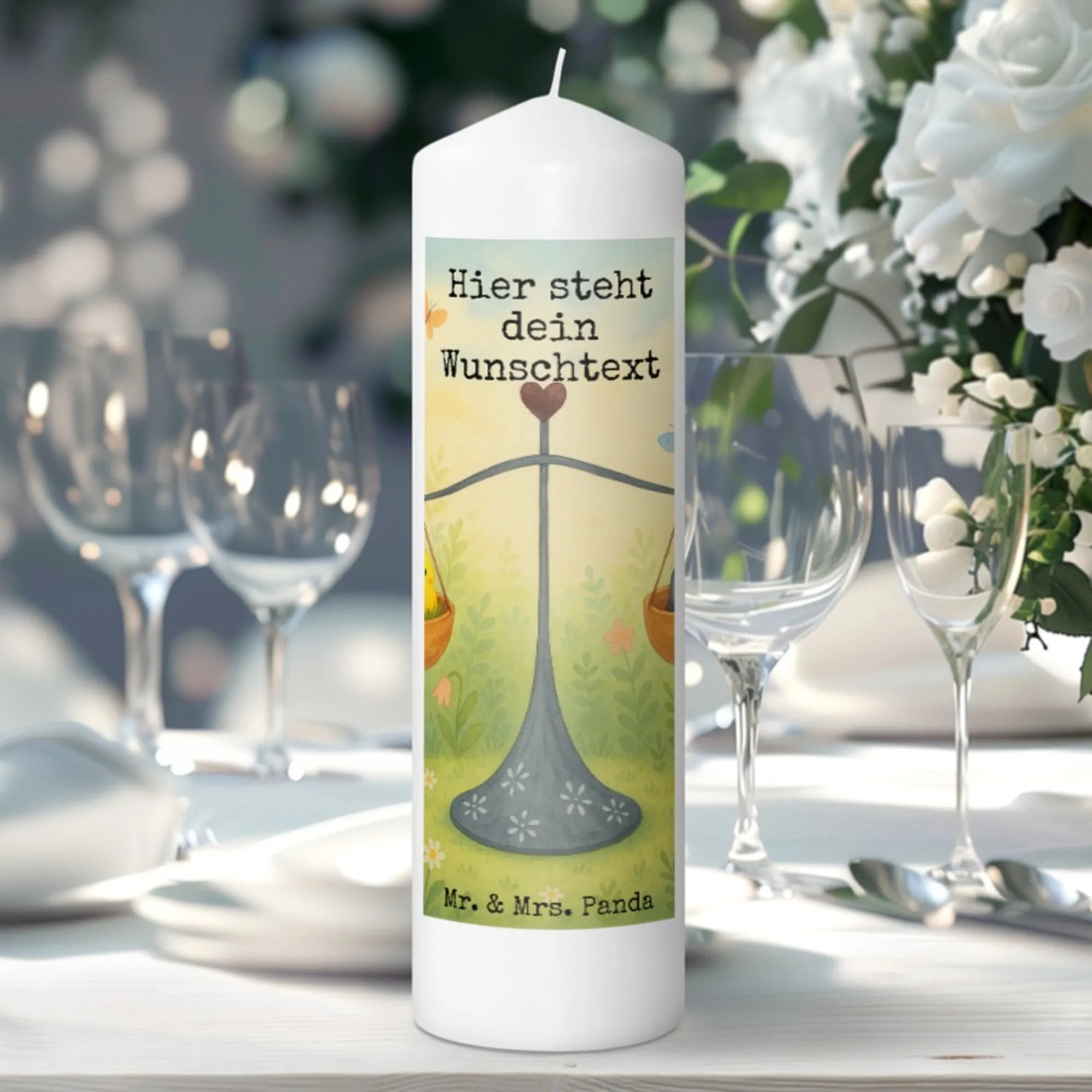 Die personalisierte Kerze von Mr. & Mrs. Panda ist ein echter Blickfang in jedem Raum! Gefertigt aus hochwertigem Parafinwachs ist sie 290 mm hoch und hat einen Durchmesser von 80 mm. Diese Kerze kann mit deinem gewünschten Namen oder Text personalisiert werden und eignet sich wunderbar als Geschenk zu besonderen Anlässen wie Geburtstagen und Jubiläen. Die besondere ultralange Brenndauer sorgt für viele stimmungsvolle Stunden. Diese Kerze ist nicht nur schön, sondern auch vielseitig: Du kannst sie als Trauerkerze nutzen. Das besondere Motiv auf der Kerze schmilzt beim Abbrennen und verleiht eine zauberhafte Note. Achte auf sanfte Pflege mit Reinigungsmitteln, damit die Kerze lange hält. Hole dir die personalisierte Kerze von Mr. & Mrs. Panda und mache jeden Moment festlich!