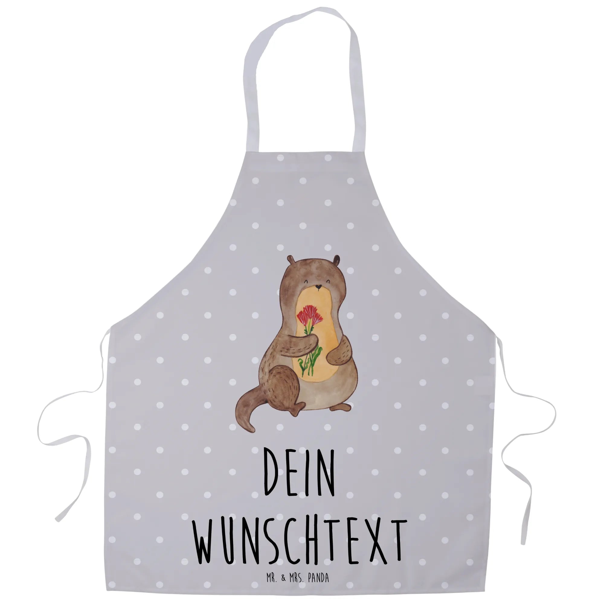 Entdecke die einzigartige personalisierte Kochschürze "Otter Blumenstrauß" aus der bezaubernden Otter-Kollektion von Mr. & Mrs. Panda! Diese Schürze ist nicht nur ein praktisches Küchenaccessoire, sondern auch ein absoluter Hingucker. Mit dem fröhlichen Motiv eines süßen Seeotters, der einen bunten Blumenstrauß in seinen Pfoten hält, zaubert sie jedem ein Lächeln ins Gesicht. Es ist das perfekte Geschenk für alle, die das Kochen, Backen oder Grillen lieben und gleichzeitig ein Stück Persönlichkeit in ihrer Küche haben möchten.