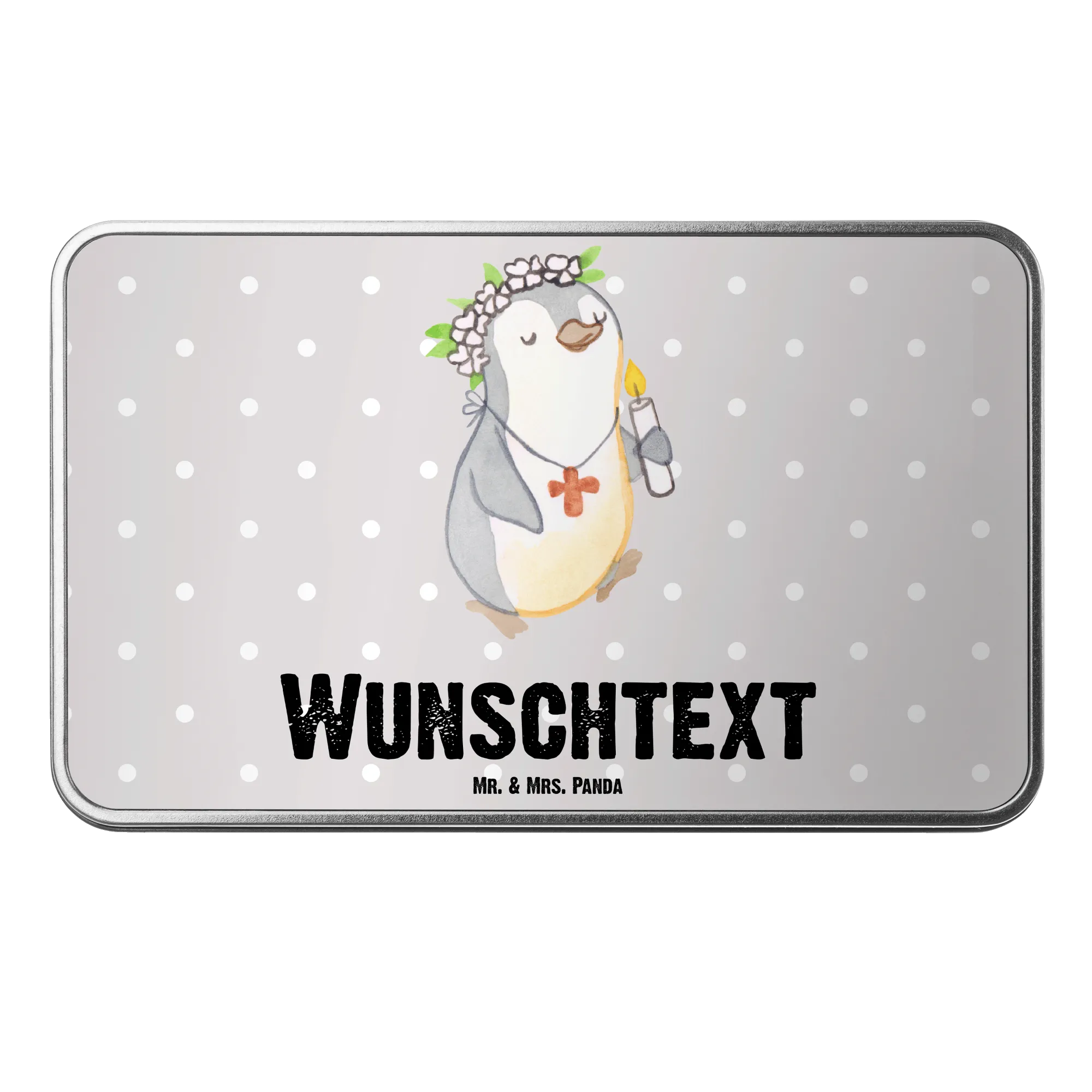 Die personalisierte Metalldose Pinguin Kommunion Mädchen von Mr. & Mrs. Panda ist das perfekte Geschenk für den besonderen Tag deiner Lieben! Egal, ob zur Kommunion, Konfirmation oder Jugendweihe - diese bezaubernde Dose ist nicht nur ein wahrer Hingucker, sondern auch eine liebevolle Erinnerung.