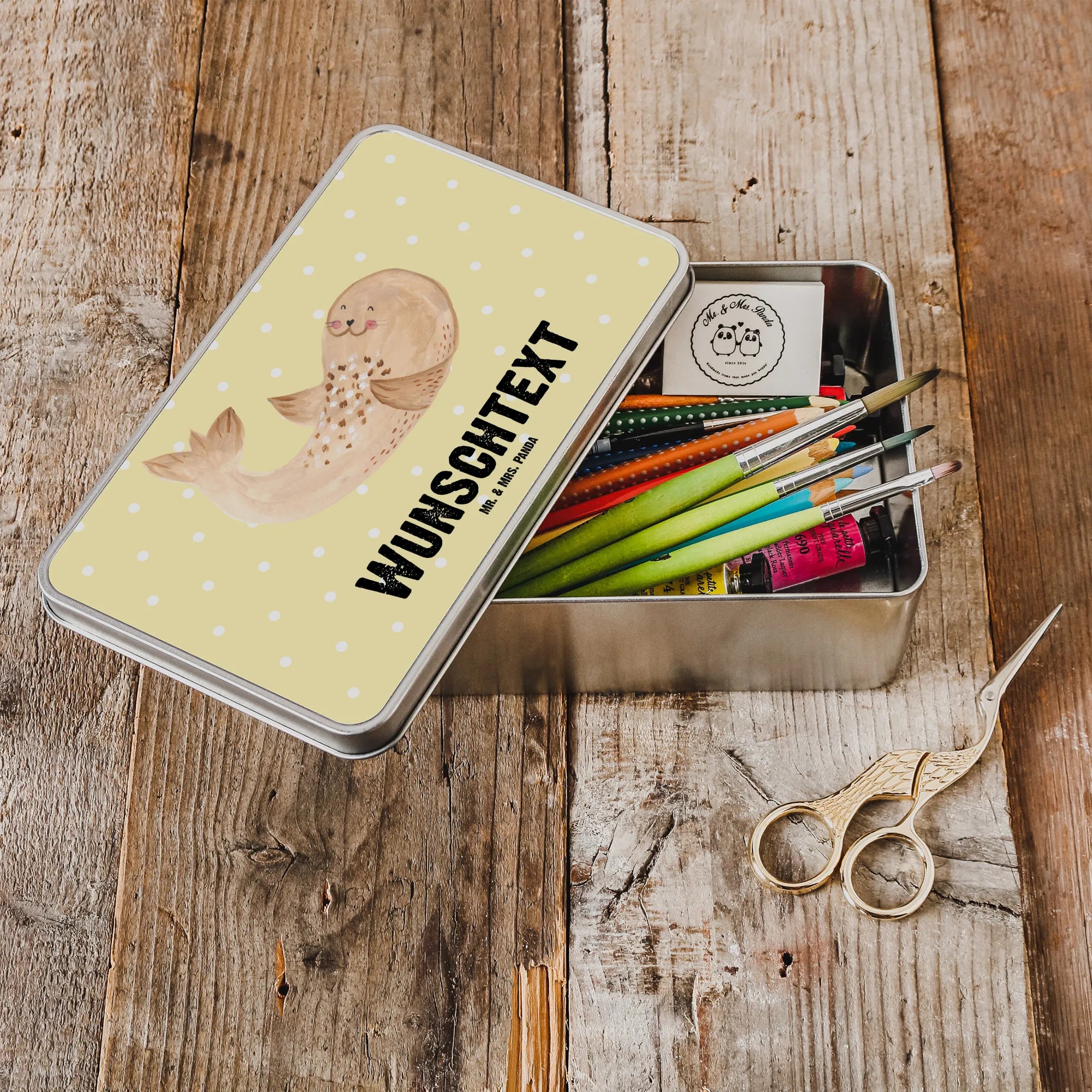 Mach dein Leben bunter mit der personalisierten Metalldose von Mr. & Mrs. Panda! Diese Rechteckdose hat die Maße von 198 mm x 128 mm x 50 mm und ein Gewicht von 180 g und ist aus hochwertigem Metall gefertigt. Sie ist stabil und langlebig und bietet dir viel Platz für Kekse oder Erinnerungen. Die bezaubernden Motive und Sprüche sind ein echter Hingucker und lassen sich mit deinem persönlichen Wunschtext oder Namen individuell gestalten. Ob als Geschenk oder zur eigenen Nutzung – die Dose eignet sich perfekt, um alles Wichtige ordentlich aufzubewahren. Ihre glänzende Oberfläche macht sie zu etwas ganz Besonderem. Bitte spüle die Dose von Hand, um ihre Schönheit zu bewahren.