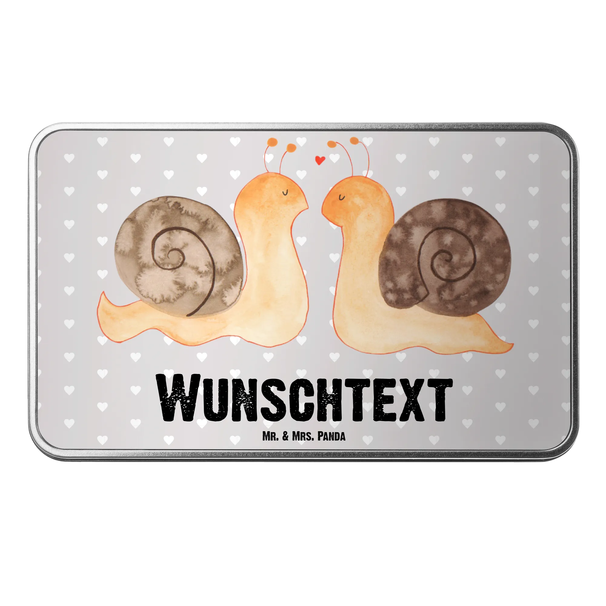 Die personalisierte Metalldose "Schnecken Liebe" aus der liebevollen Kollektion von Mr. & Mrs. Panda ist das perfekte Geschenk für alle Verliebten oder solche, die es werden möchten! Diese wunderschöne Dose, bedruckt mit einem süßen Motiv von zwei niedlichen Schnecken, die sich näherkommen und von kleinen, roten Herzen umgeben sind, symbolisiert Verbundenheit und Zuneigung.