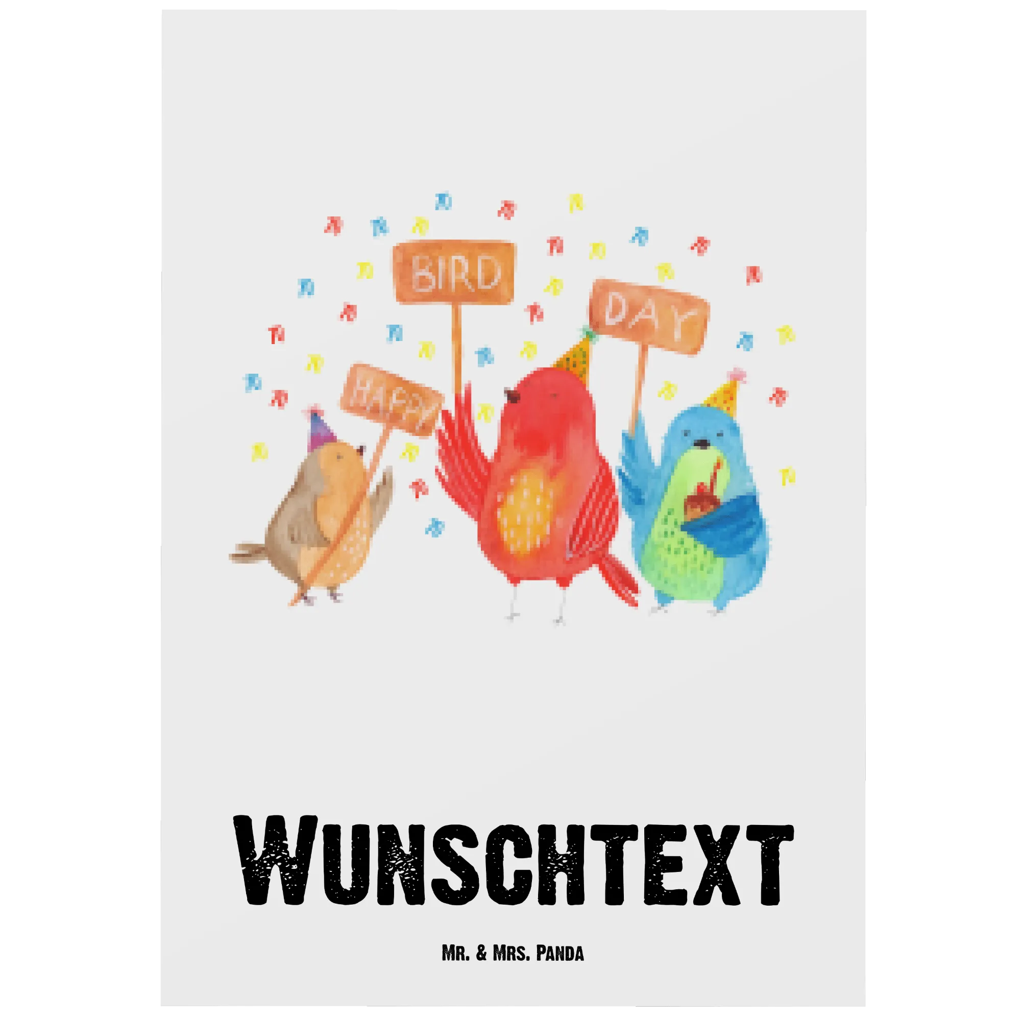 Entdecke die zauberhafte Welt der personalisierten Postkarten von Mr. & Mrs. Panda! Unsere Postkarte zum 70. Geburtstag mit dem fröhlichen Motiv "Happy Bird Day" ist die perfekte Wahl für diesen besonderen Anlass. Sie wurde mit viel Liebe zum Detail entworfen und zeigt niedliche Vögel in bunten Partyhütchen, die fröhlich deinen Ehrentag feiern.