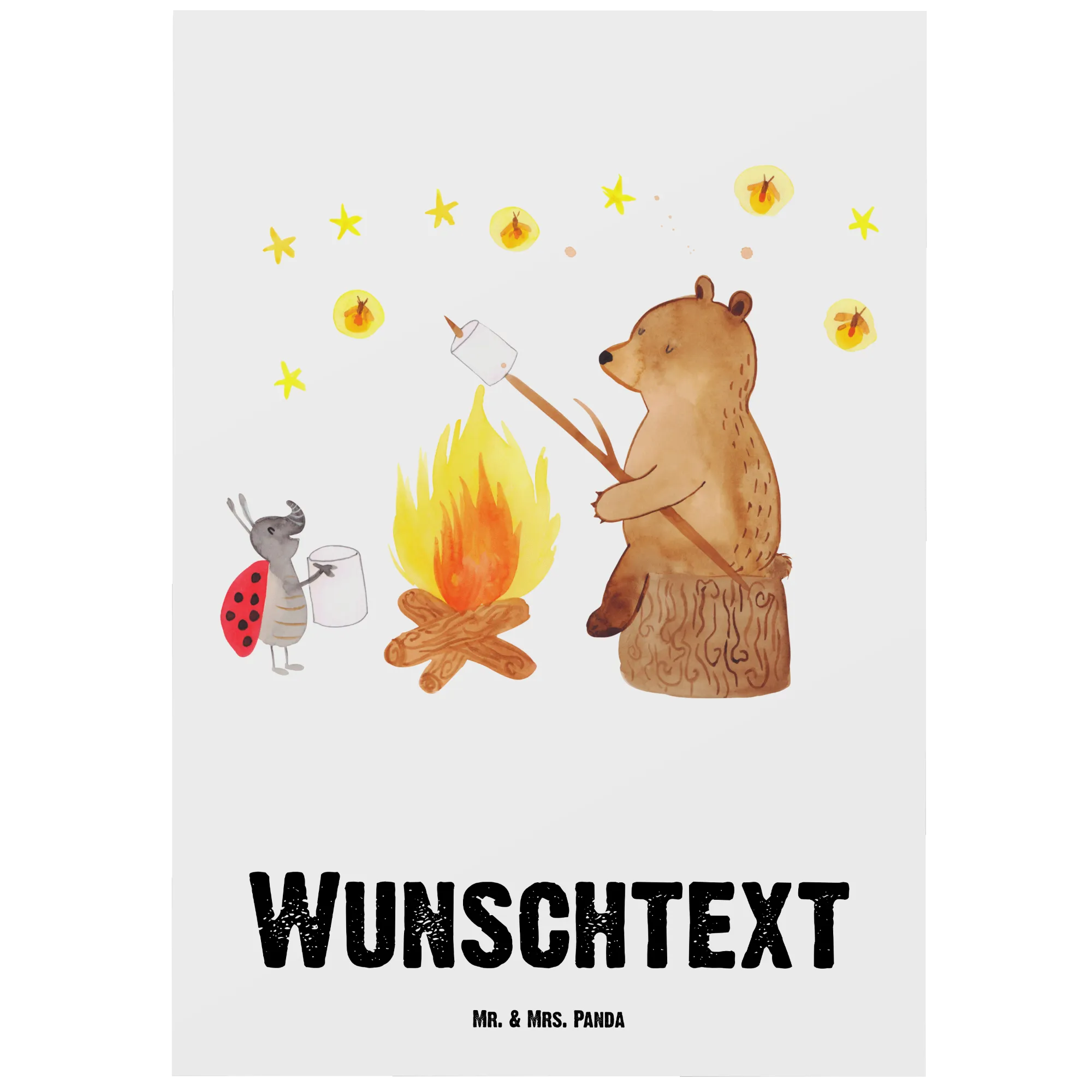 Die personalisierte Postkarte Bär & Marienkäfer mit Lagerfeuer von Mr. & Mrs. Panda ist das perfekte Geschenk für alle, die lieben, sich mit besonderen, persönlichen Notizen auszudrücken. Diese einzigartige Karte ist nicht nur personalisierbar mit deinem Wunschnamen oder Wunschtext, sondern bringt auch eine süße Illustration eines Bären und eines Marienkäfers zum Leben, die gemütlich am Lagerfeuer sitzen. Das niedliche Motiv sorgt für eine herzliche Atmosphäre und ist ideal für zahlreiche Anlässe. Geburtstage, Hochzeiten, Taufen oder einfach nur als kleine Aufmerksamkeit für einen lieben Menschen - diese Grußkarte mit Namen bringt Freude in jeden Briefkasten!