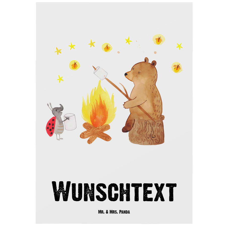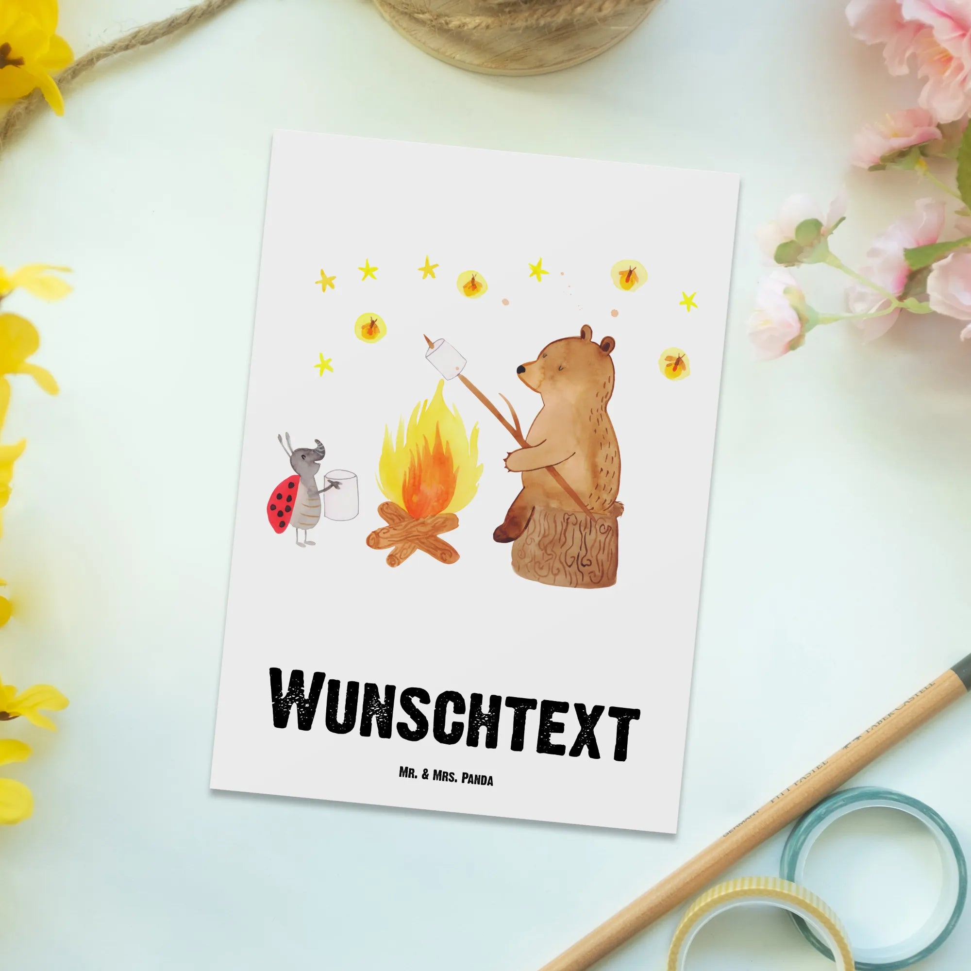 Personalisierte Postkarte Bär & Marienkäfer Lagerfeuer