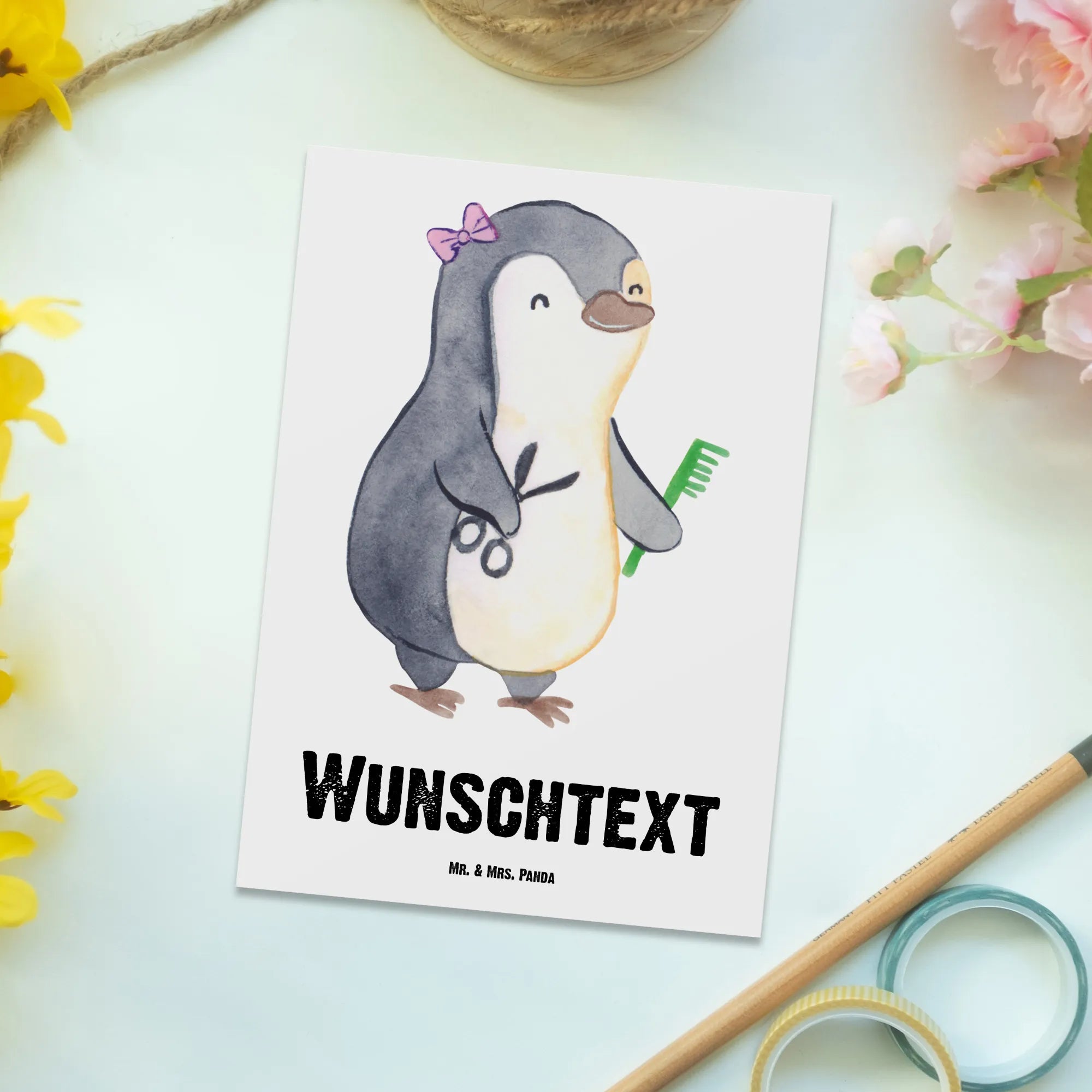 Dank der individuellen Anpassung lädst du die Karte mit Persönlichkeit auf, sodass sie nicht nur als Grußkarte dient, sondern auch eine wunderbare, bleibende Erinnerung darstellt. Mach deiner Freundin, deinem Kollegen oder deiner Schwester eine Freude und überrasche sie mit dieser einzigartigen, personalisierten Postkarte. Entdecke jetzt die kreativen Möglichkeiten, die unsere Kollektion für Berufe zu bieten hat und finde die perfekte Karte, um deinen herzlichen Worten den richtigen Raum zu geben. Schenke Freude mit Mr. & Mrs. Panda – denn jede Hairstylistin ist es wert, gefeiert zu werden!
