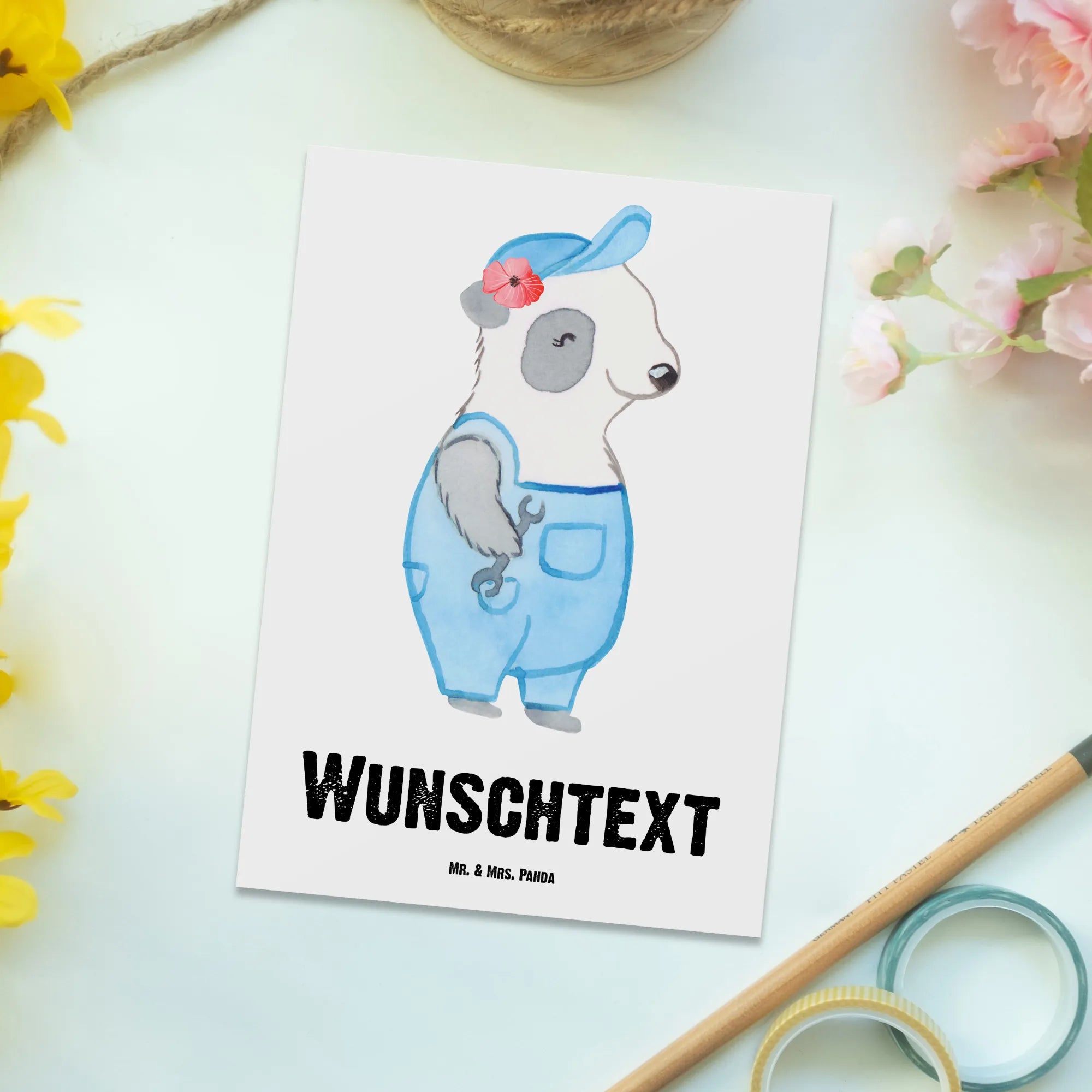 Entdecke die perfekte, personalisierte Postkarte "Handwerkerin mit Herz" aus der zauberhaften Kollektion von Mr. & Mrs. Panda! Diese Karte ist nicht nur ein einfacher Gruß, sondern ein ganz persönliches Geschenk für Handwerkerinnen, die mit Leidenschaft und Herzblut ihrem Beruf nachgehen.