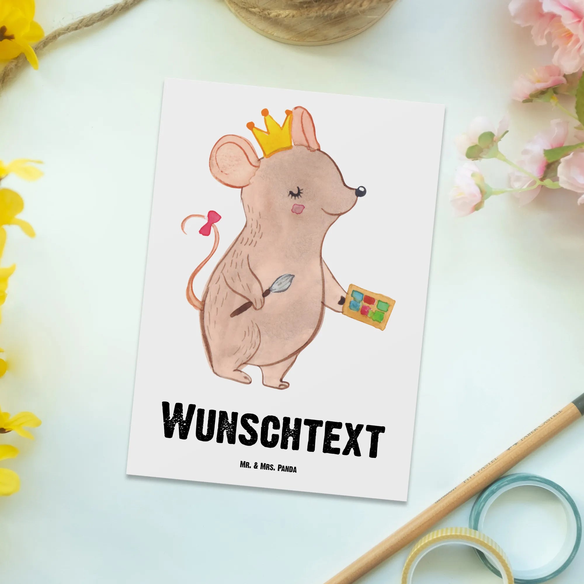 Die süße Maus auf der Karte, die mit einer Krone, Lidschatten und einem Schminkpinsel ausgestattet ist, zieht alle Blicke auf sich und bringt ein Lächeln auf die Gesichter deiner Freunde und Kollegen.