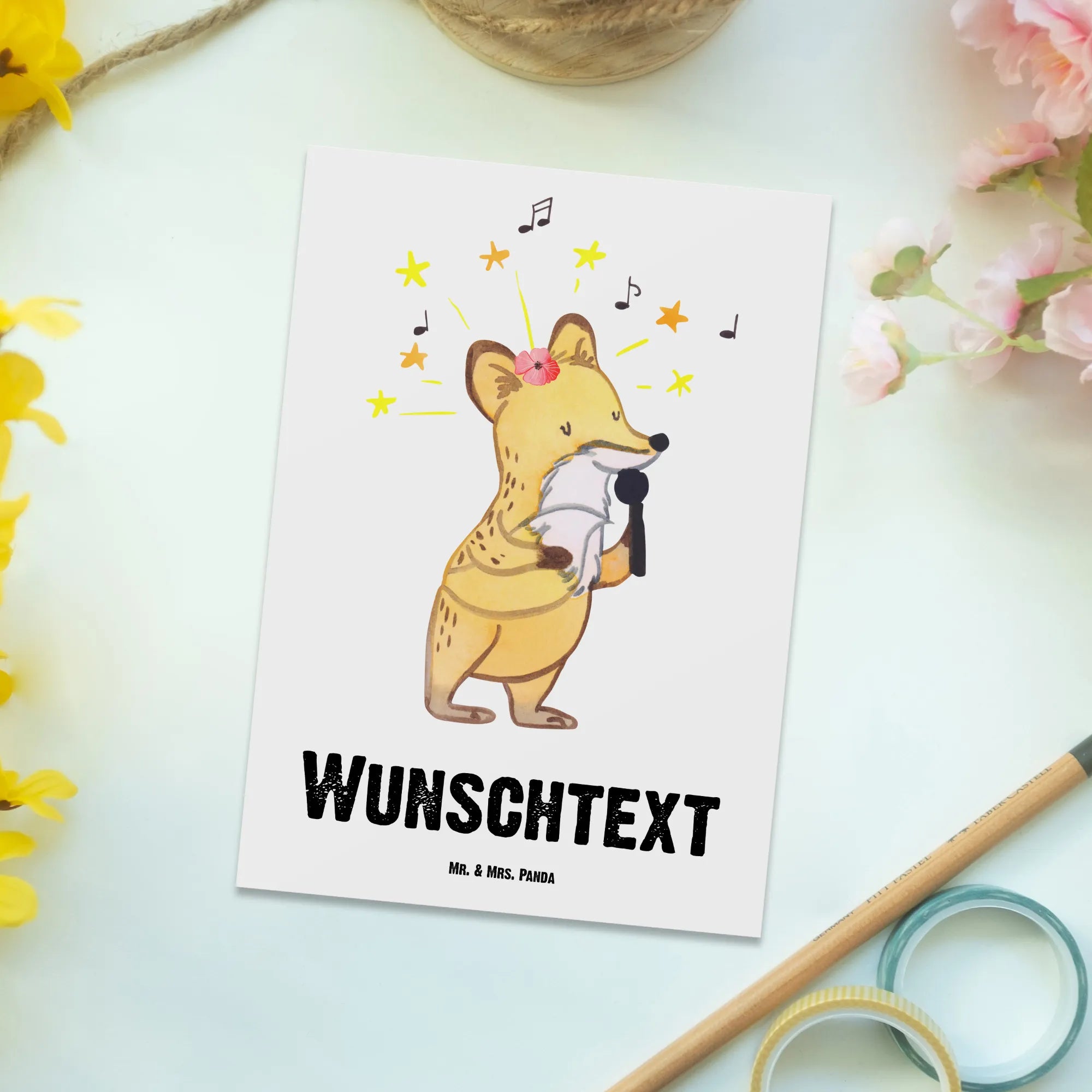 Die personalisierte Postkarte "Musicaldarstellerin mit Herz" aus der kreativen Berufe Kollektion von Mr. & Mrs. Panda ist das perfekte Geschenk für alle Musicaldarstellerinnen und Musicaldarsteller. Sie begeistert mit einem niedlichen Motiv eines Fuchses, der voller Leidenschaft singt und dazu den humorvollen Spruch "Du bist nur ein halber Mensch, wenn du keine Musicaldarstellerin bist" trägt. Diese einzigartige Karte bietet dir die Möglichkeit, sie mit deinem Wunschnamen oder Wunschtext zu personalisieren, was sie zu einem ganz besonderen Erinnerungsstück macht.