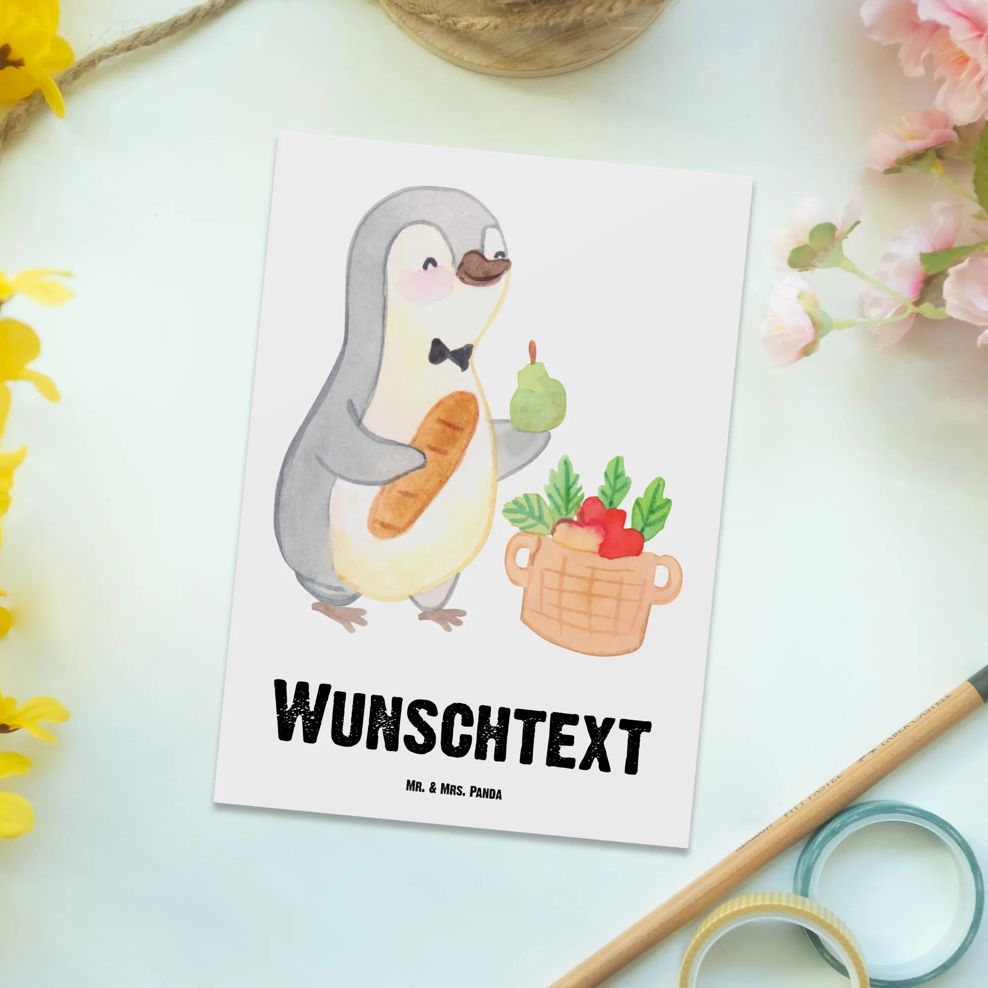 Personalisierte Postkarte Obsthändler mit Herz – Mr. & Mrs. Panda