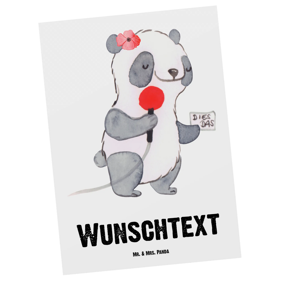 Suchst du nach einem besonderen Geschenk für eine tolle Pressereferentin in deinem Leben? Dann ist die personalisierte Postkarte "Pressereferentin mit Herz" von Mr. & Mrs. Panda genau das Richtige für dich! Mit ihrem einzigartigen, liebevollen Design und dem witzigen Slogan "Du bist nur ein halber Mensch, wenn du keine Pressereferentin bist", bringst du ein Lächeln auf das Gesicht jeder Pressemitarbeiterin.