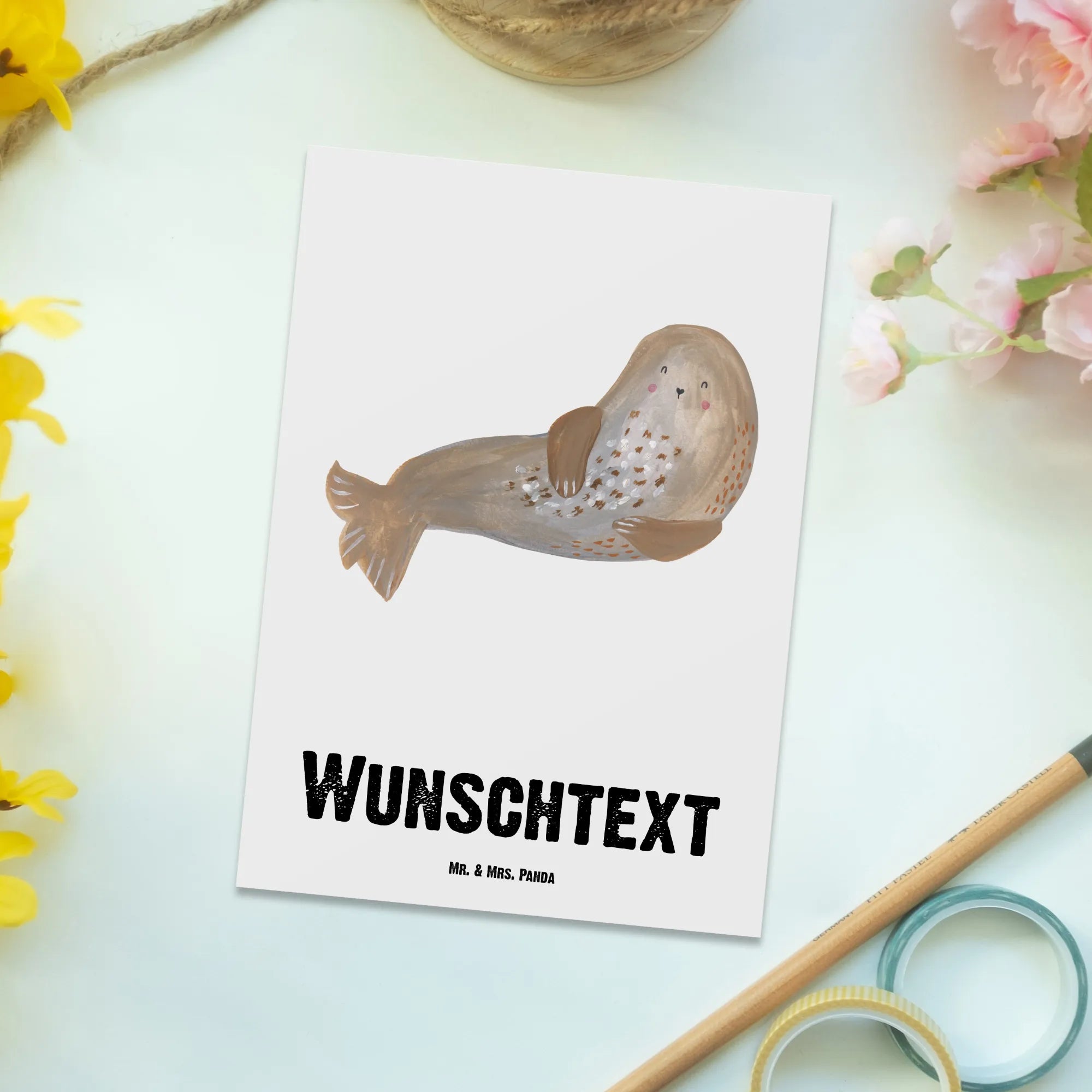 Personalisierte Postkarte Robbe lachend Geschenkkarte mit Wunschtext, Postkarte bedrucken, Postkarte mit Namen, Grußkarte mit Namen, Postkarte personalisierbar, Einladung mit Namen, Grußkarte mit Wunschtext, Karte mit Namen, Karte mit Wunschtext, Geschenkkarte mit Namen, Ansichtskarte mit Wunschtext, Einladung mit Wunschtext, Ansichtskarte mit Namen, Postkarte mit Wunschtext, Tiermotive, Gute Laune, lustige Sprüche, Tiere, Ostsee, Seehund, Nordsee, Robbe, Strand, Meerestier, Robben
