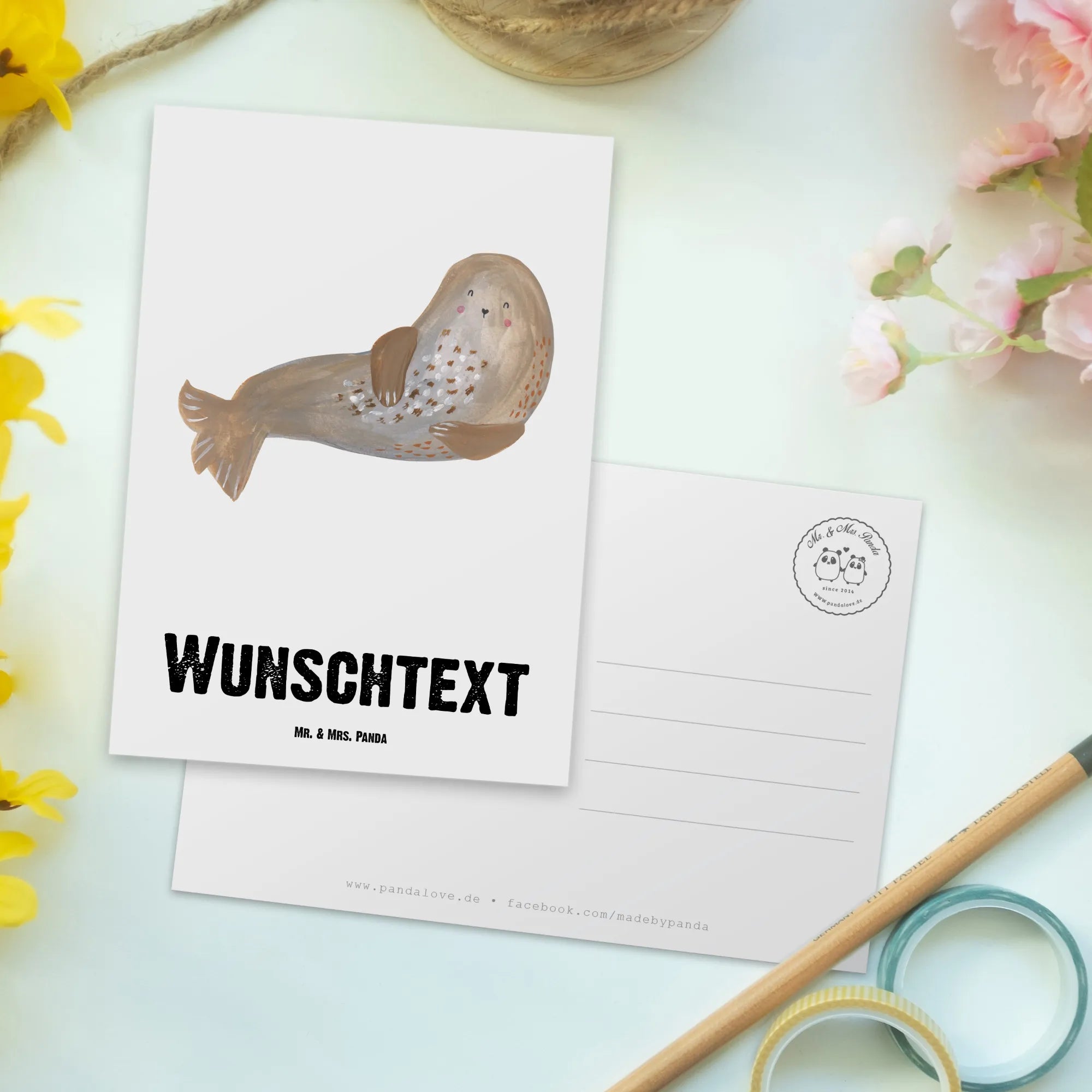 Personalisierte Postkarte Robbe lachend – Mr. & Mrs. Panda