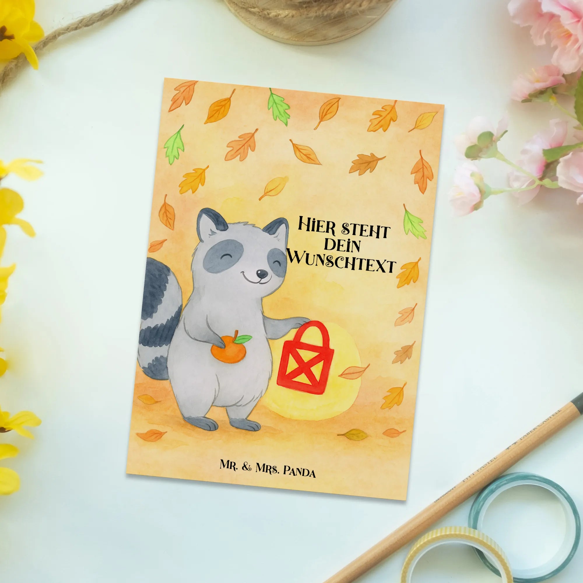 Personalisierte Postkarte Waschbär Laterne Design