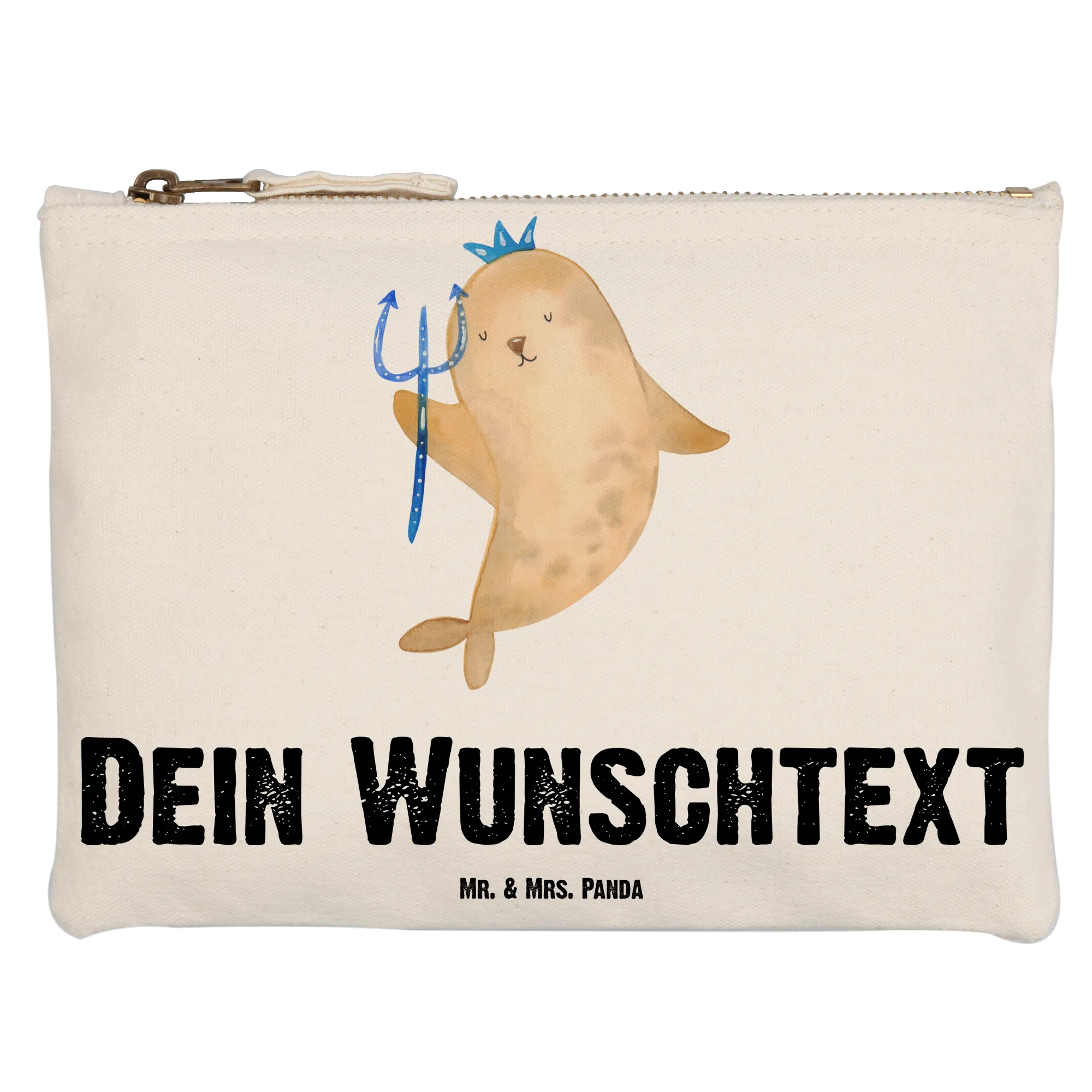 Diese wunderschöne Tasche ist nicht nur ein praktischer Begleiter für all deine Kosmetikartikel, sondern auch ein ganz persönliches Geschenk. Besonders liebevoll handgezeichnet von Mrs. Panda, zeigt sie eine niedliche Robbe mit einer Krone und einem Zepter, die den Wassermann spielerisch verkörpert. Mit dem spritzigen Slogan 'Spontan und grandios wie ein Wassermann' wird jeder Moment etwas ganz Besonderes.