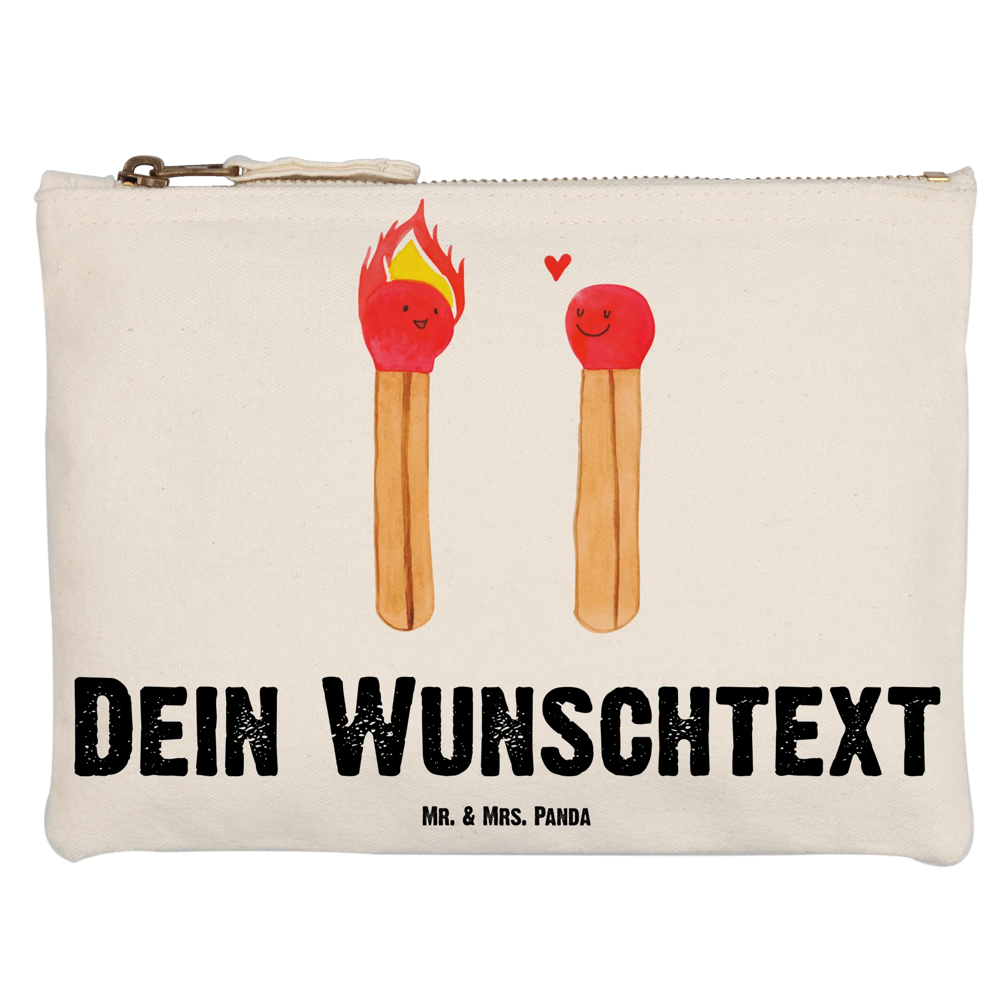 Entdecke die perfekte personalisierte Schminktasche von Mr. & Mrs. Panda, die für all deine Schönheitsartikel entworfen wurde. Diese bezaubernde Tasche mit dem Motiv "Streichhölzer" aus unserer Liebeskollektion ist nicht nur praktisch, sondern auch ein liebevolles Geschenk, das Freude bereitet.