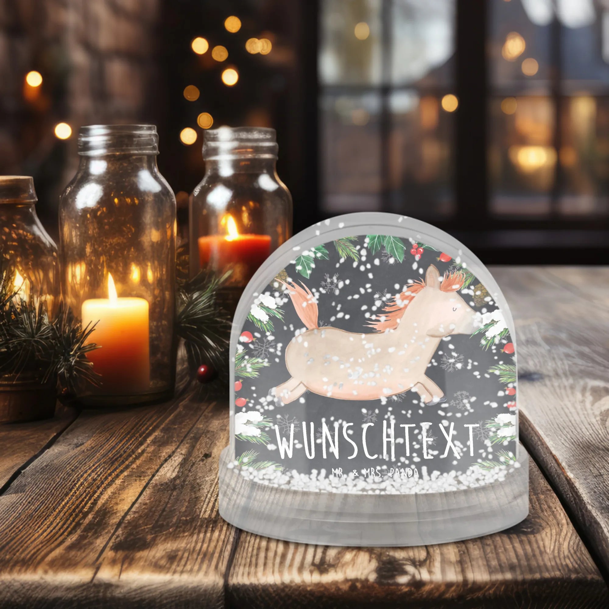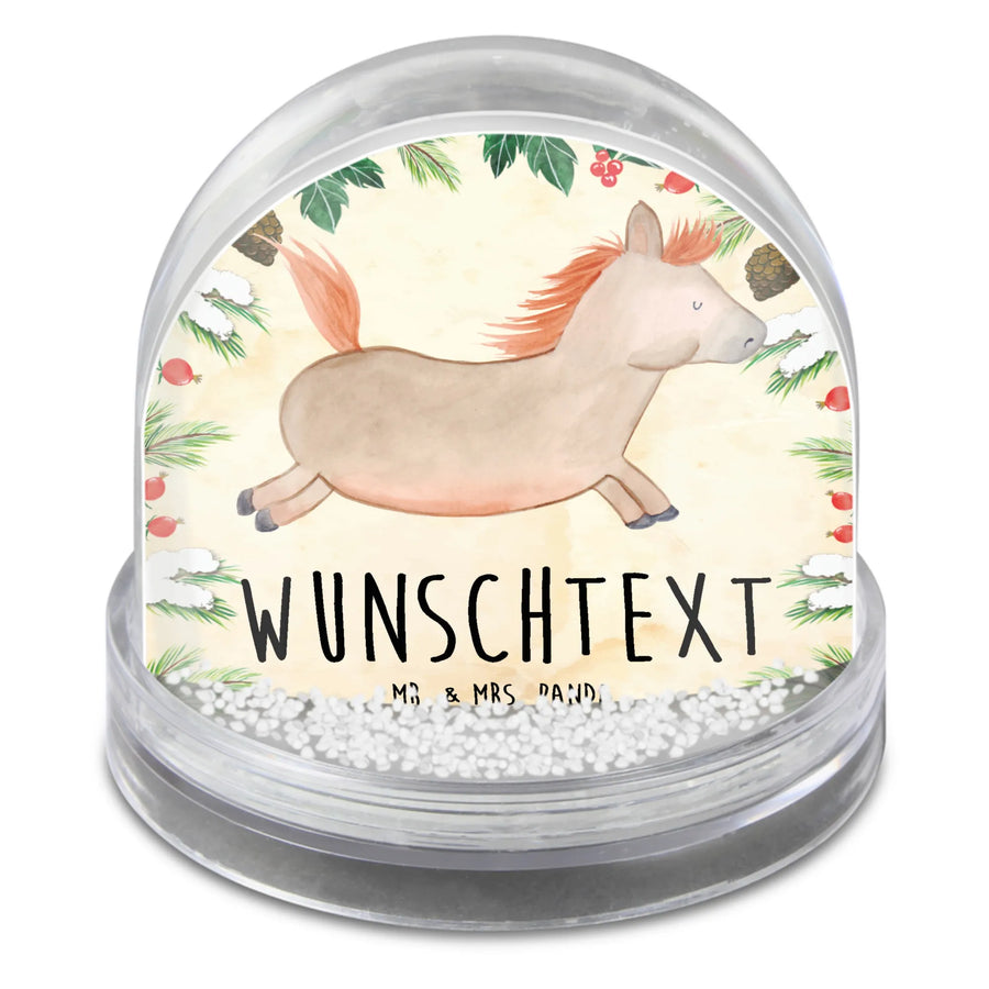 Die wunderschöne Personalisierte Schneekugel mit dem Motiv "Pferd springt" von Mr. & Mrs. Panda ist das perfekte Geschenk für jeden Pferdeliebhaber und Pferdebesitzer!