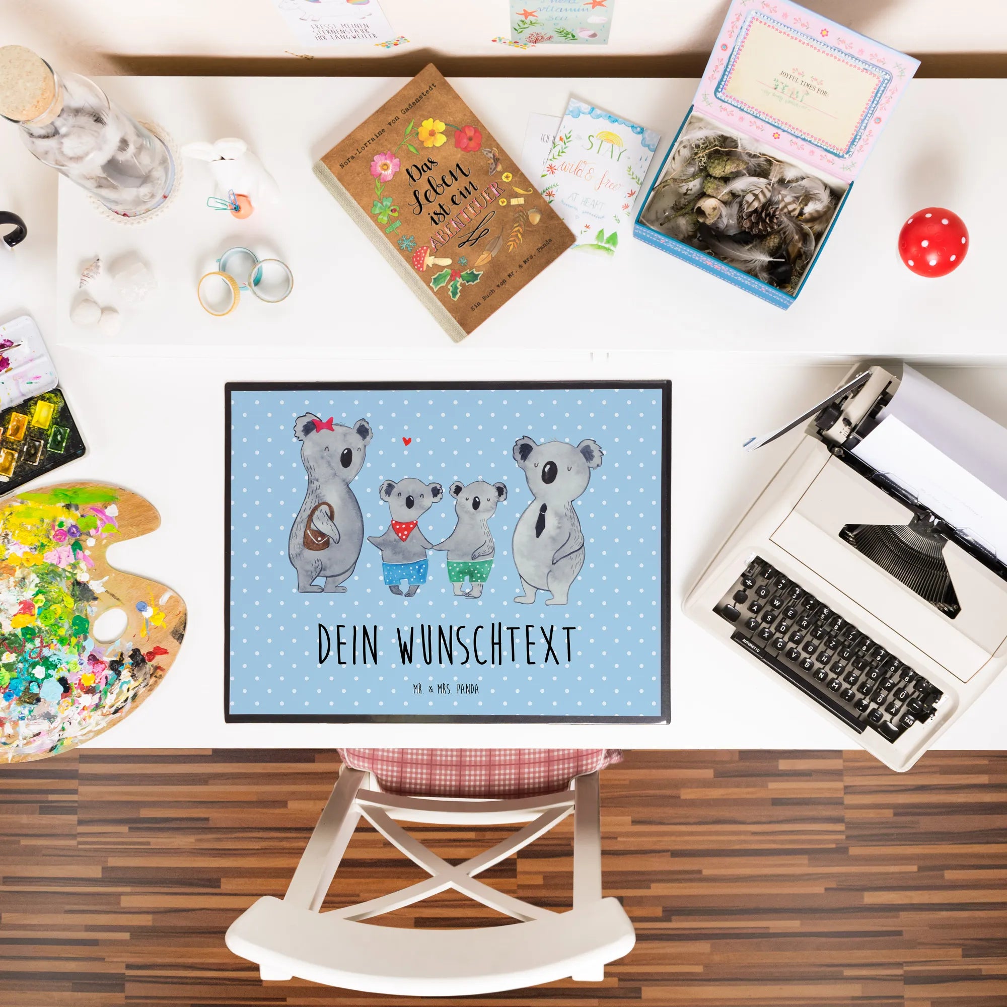 Bist Du auf der Suche nach dem perfekten Geschenk für Deine Familie? Dann ist die personalisierte Schreibtischunterlage mit dem süßen Koala Familienmotiv von Mr. & Mrs. Panda genau das Richtige für Dich! Diese wundervolle Schreibtischauflage vereint Funktionalität und Stil, während sie auch noch Deine Liebe zur Familie unterstreicht.