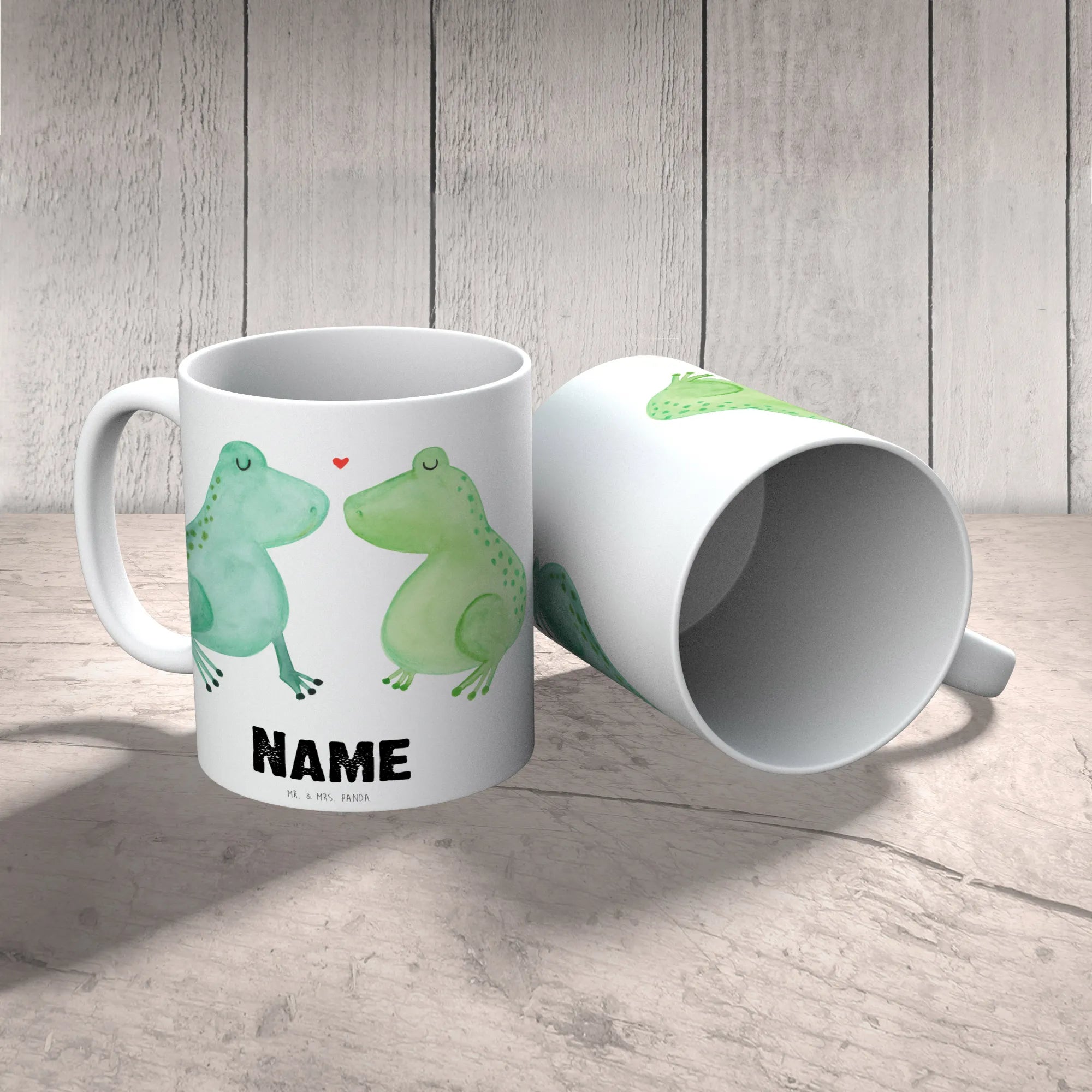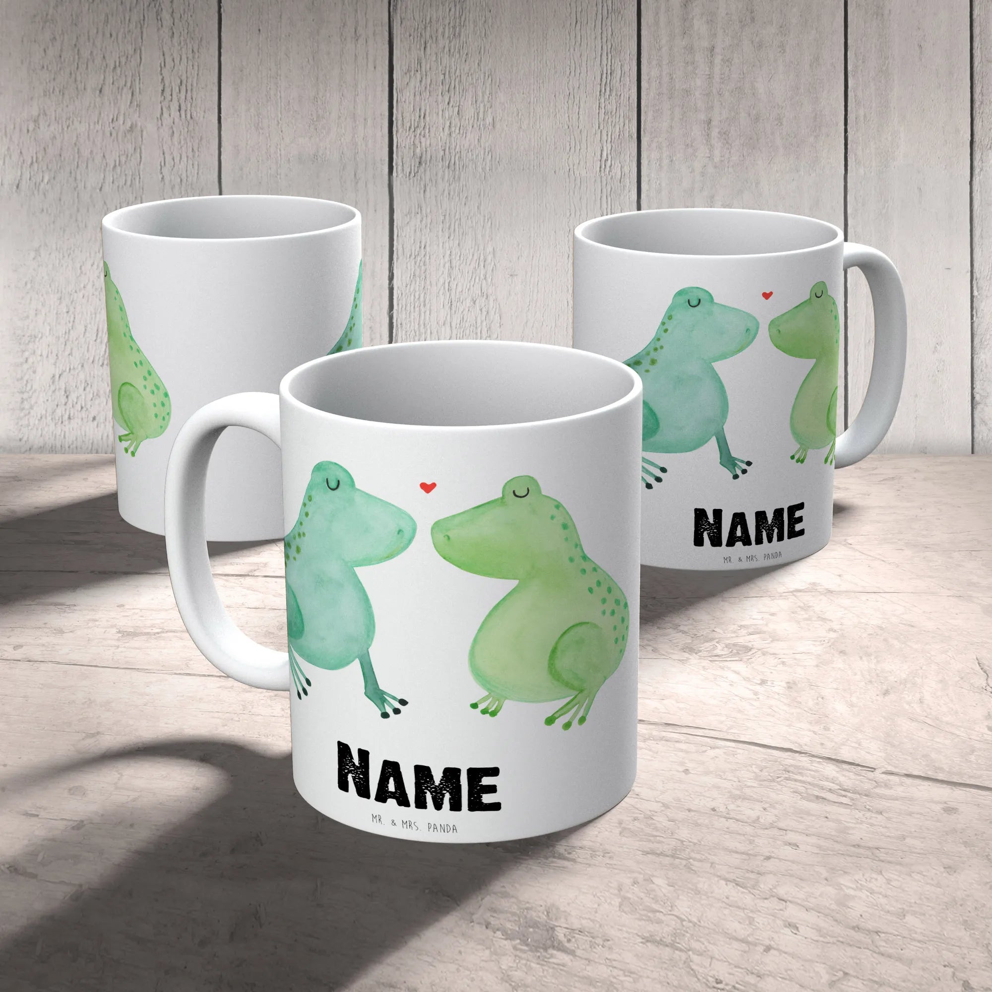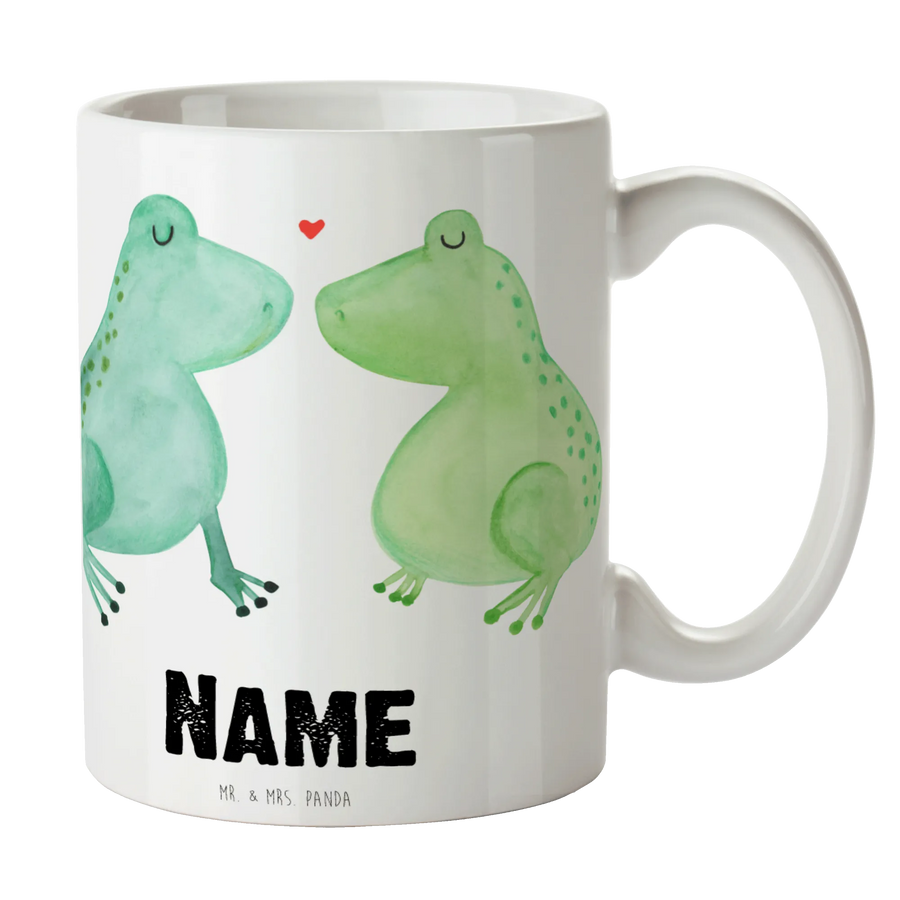 Die personalisierte Tasse "Frosch Liebe" von Mr. & Mrs. Panda ist mehr als nur eine Tasse. Sie ist ein liebevolles Geschenk, das das Gefühl der Zuneigung und Verbundenheit perfekt transportiert. Mit ihrem süßen Froschmotiv, das zwei lächelnde Frösche zeigt, die sich gegenübersitzen und um ein rotes Herz blicken, strahlt diese Tasse pure Romantik aus.