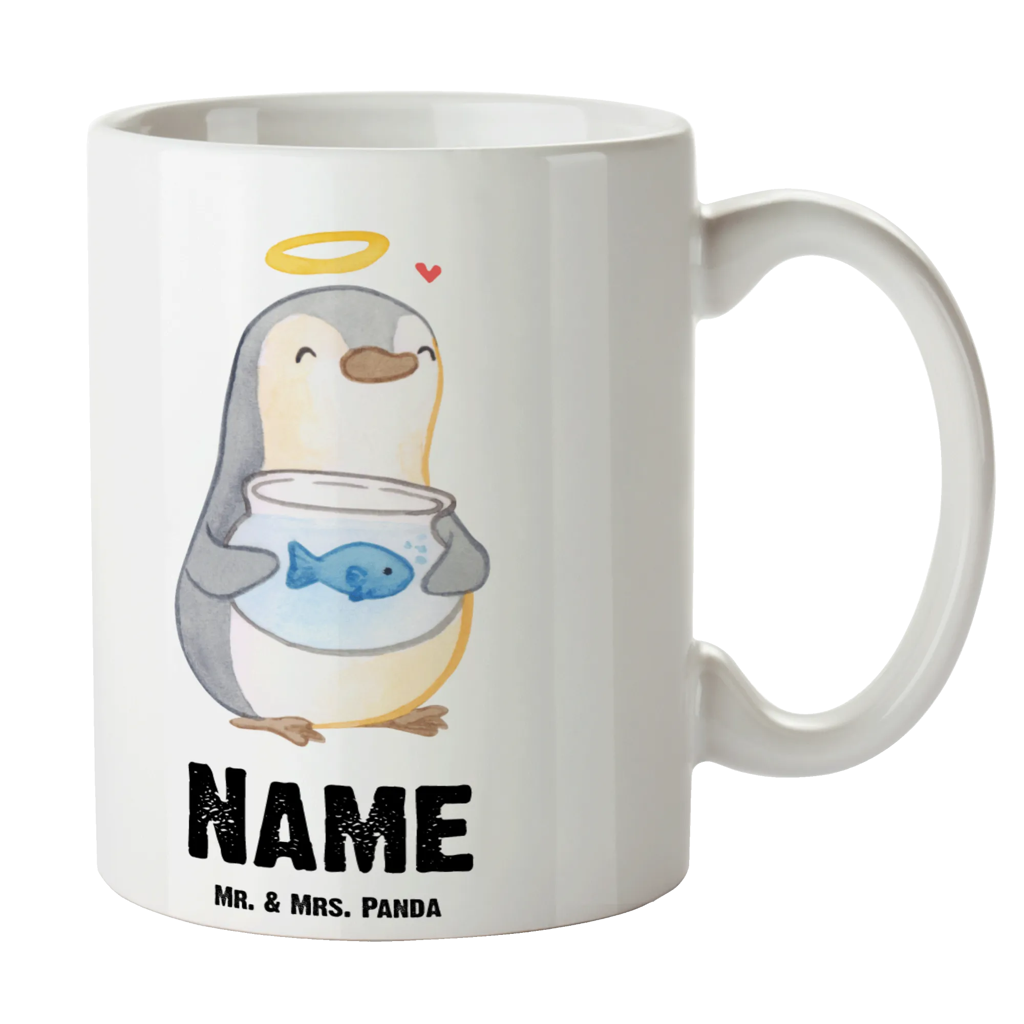 Kaffeebecher personalisiert Pinguin Fisch