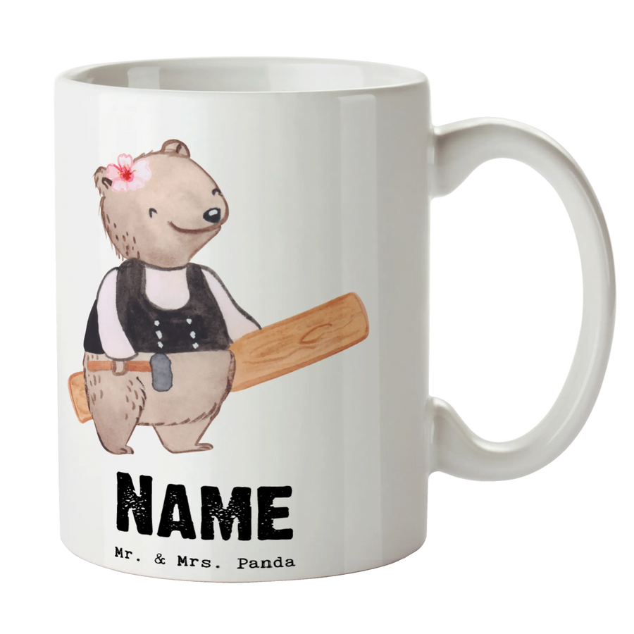 Suchst Du ein persönliches Geschenk, das Herz und Humor verbindet? Unsere Personalisierte Tasse aus der Berufe-Kollektion von Mr. & Mrs. Panda zeigt einen niedlichen weiblichen Bären in Zimmermannskleidung, mit Hammer und Holzbrett – kombiniert mit dem frechen Spruch „Du bist nur ein halber Mensch, wenn du keine Zimmerfrau bist.“ Diese Tasse mit Namen ist ideal, um Danke zu sagen, zum Abschied oder zum Berufsjubiläum.