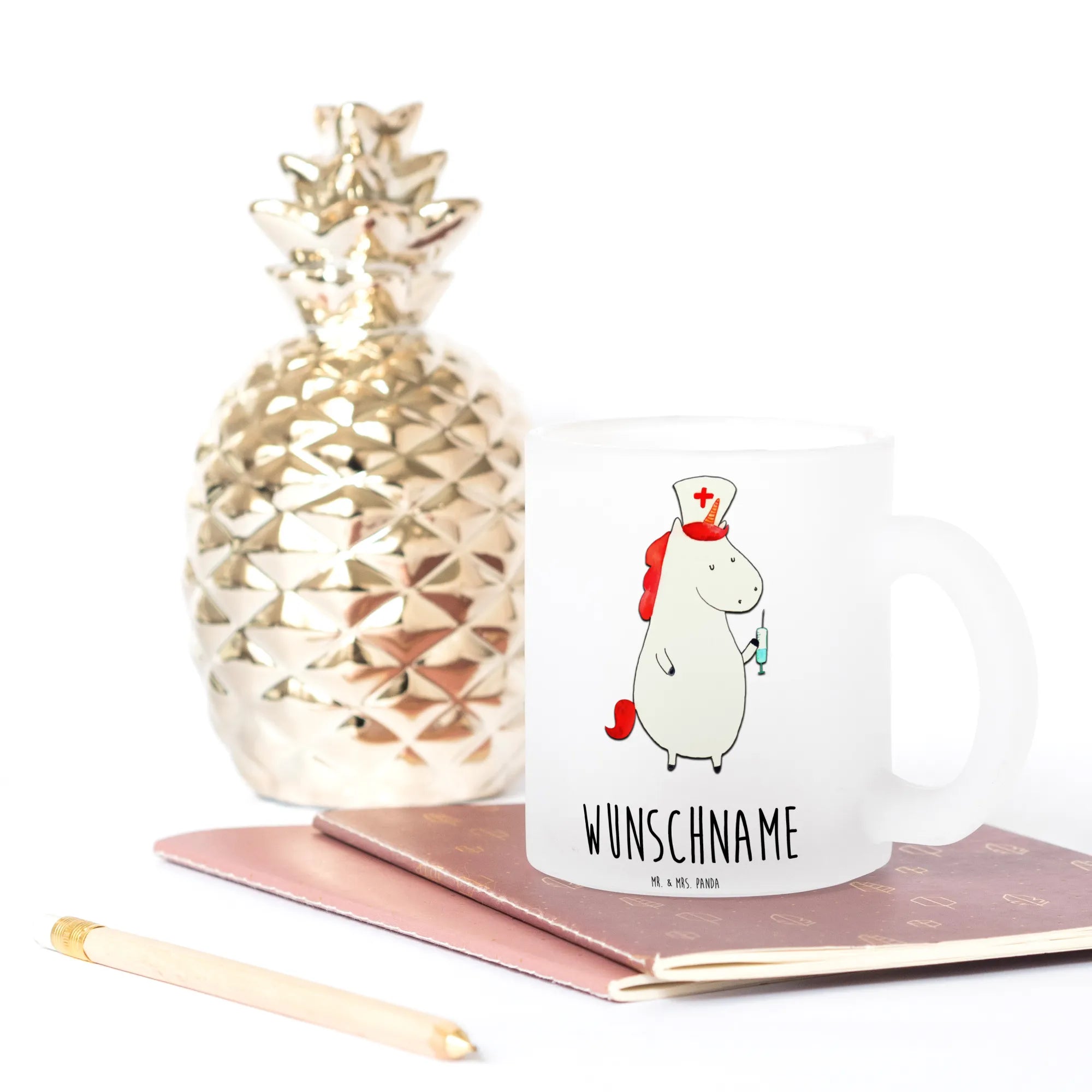 Die personalisierte Teetasse Einhorn Krankenschwester von Mr. & Mrs. Panda ist das perfekte Geschenk für all diejenigen, die die zauberhafte Welt der Einhörner und die wertvolle Arbeit von Krankenschwestern lieben. Diese Tasse aus robustem Glas ist nicht nur ein wunderschönes Accessoire für den Alltag, sondern auch eine liebevolle Geste, die zeigt, wie sehr man diese besonderen Menschen wertschätzt.