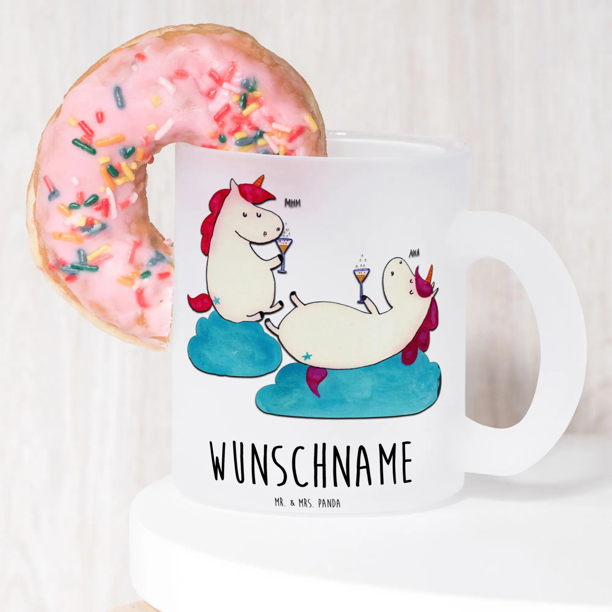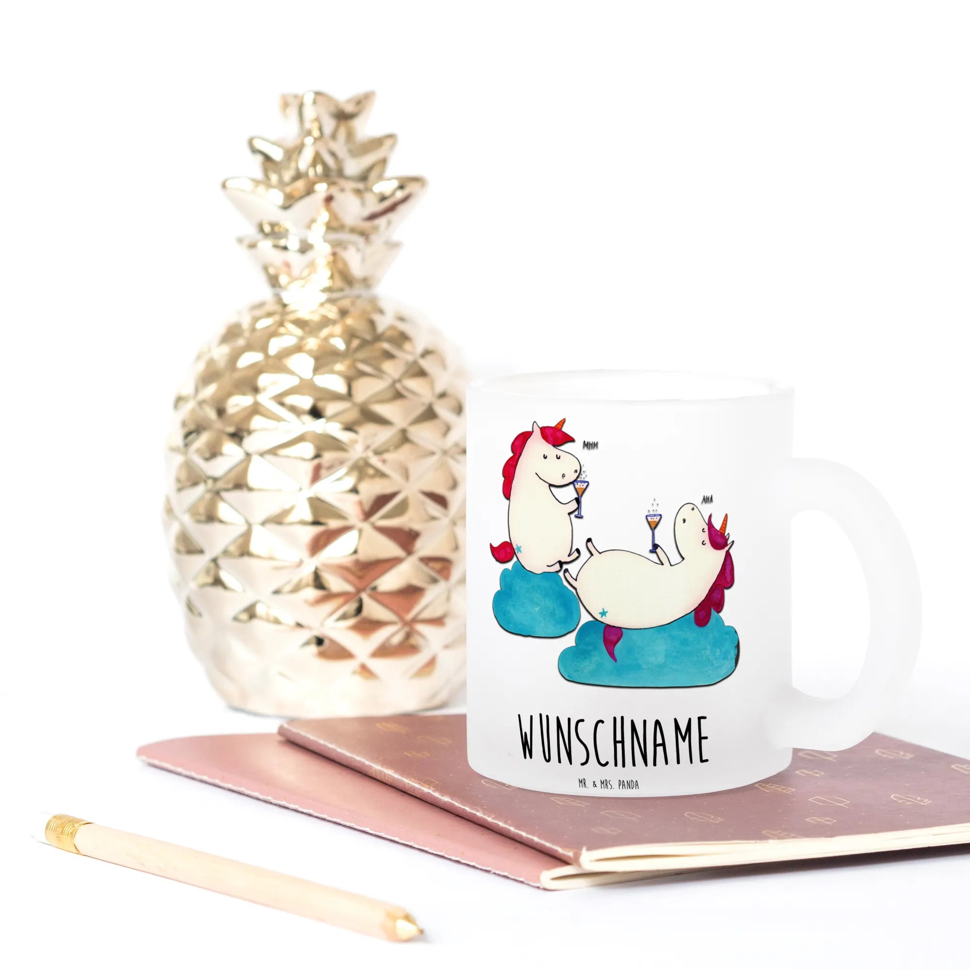 Entdecke die zauberhafte Welt der personalisierten Teetassen von Mr. & Mrs. Panda! Unsere personalisierte Teetasse Einhörner Sekt ist nicht nur ein praktisches Accessoire, sondern auch ein wunderschönes Geschenk für alle, die Einhörner lieben. Diese edle Teetasse aus robustem Glas bietet Platz für dein Lieblingsgetränk, ob Tee, Kaffee oder Sekt. Das entzückende Einhorn-Motiv zeigt zwei fröhliche Einhörner, die begeistert ein Glas Sekt anstoßen und sorgt für gute Laune bei Mädelsabenden, Partys oder einfach beim Entspannen zu Hause.
