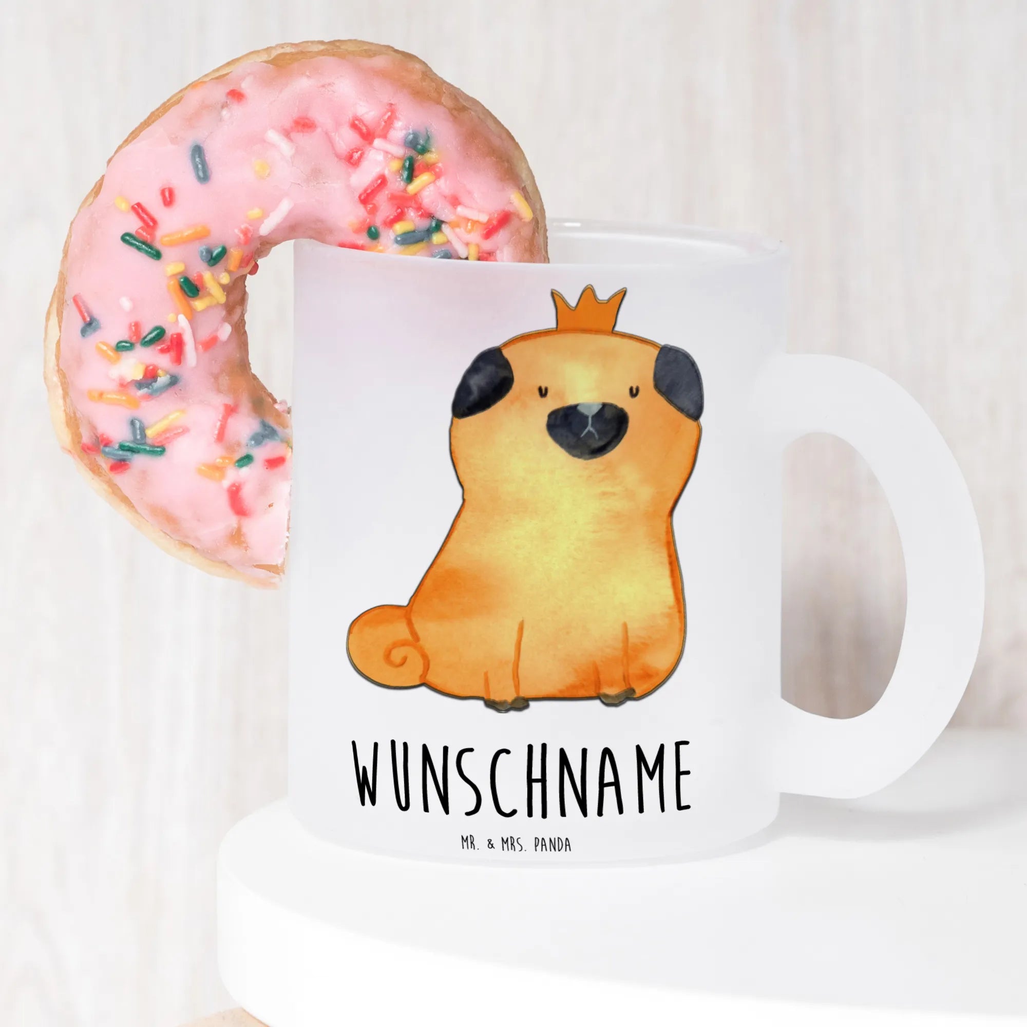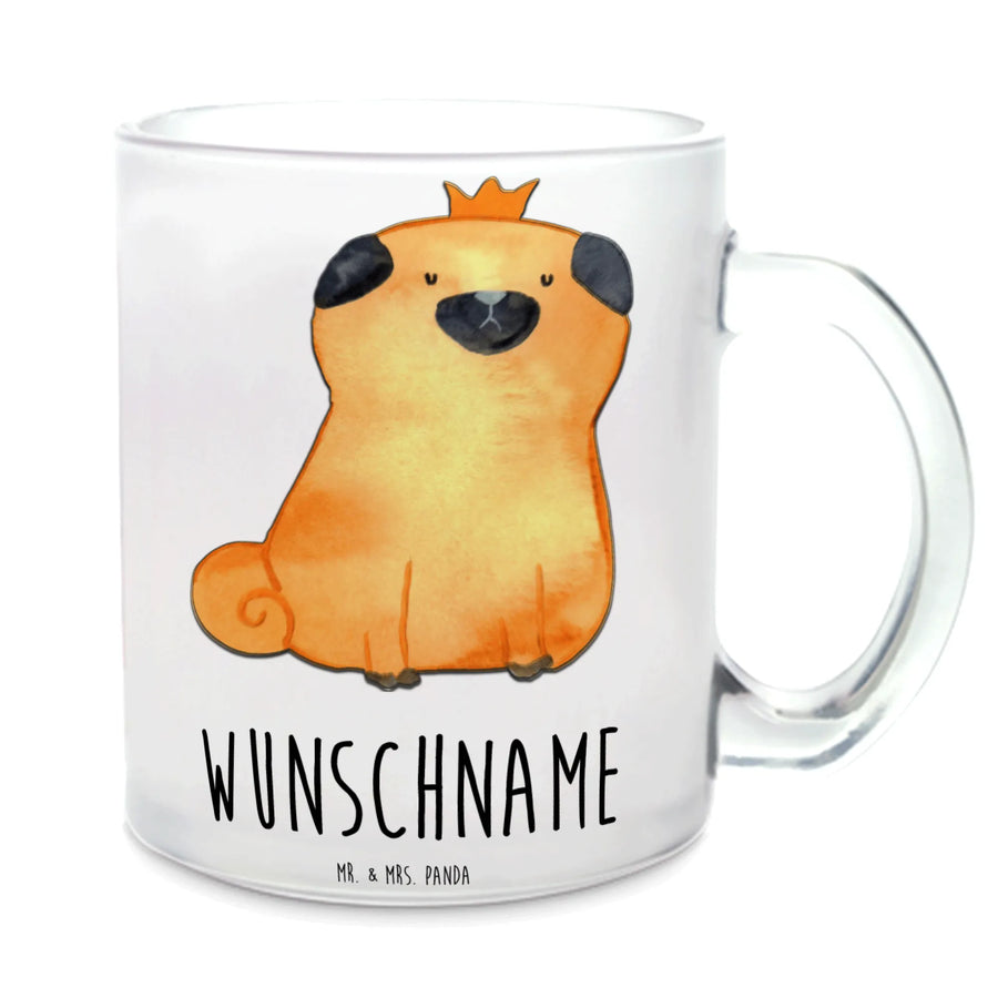 Du suchst nach dem perfekten Geschenk für einen Hundeliebhaber? Unsere personalisierte Teetasse mit dem süßen Mops-Motiv "Mops Krone" aus der Hunde Kollektion von Mr. & Mrs. Panda ist genau das richtige!