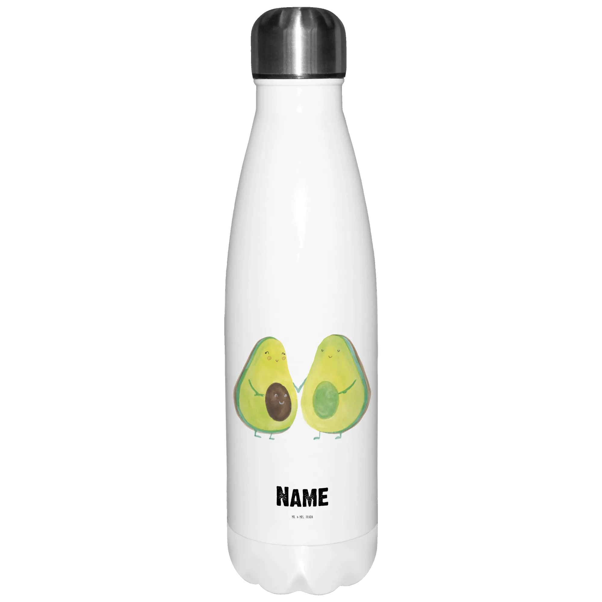 Das süße Avocado Pärchen, das sich an den Händen hält und verliebt anschaut, ist ein Zeichen für Liebe und Zusammenhalt. Mit einem Füllvolumen von 500 ml ist die personalisierte Trinkflasche ideal für Heiß- und Kaltgetränke. Genieße deinen heißen Tee oder deinen erfrischenden Eistee, die doppelte Edelstahl-Wandkonstruktion hält deine Getränke ganz einfach auf der perfekten Temperatur.