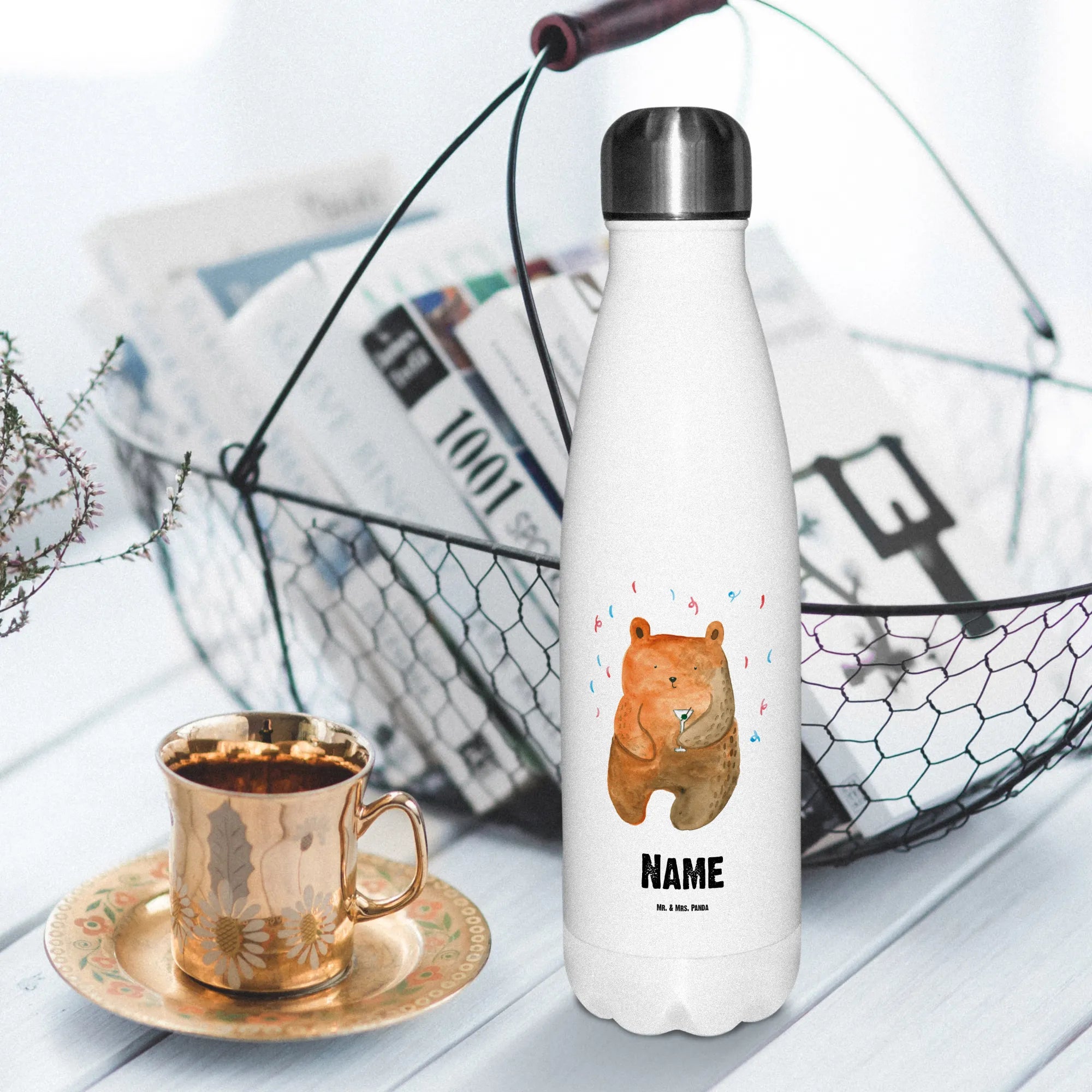 Wenn du das Besondere magst und jemandem mit einem tollen Geschenk überrascht werden möchtest, ist die personalisierte Thermosflasche von Mr. & Mrs. Panda genau das richtige. Die Bären-Kollektion mit ihren liebevoll handgezeichneten Motiven versprüht Freude und macht das Leben bunter. Lass den Bären für dich tanzen und genieße jeden Schluck aus deiner personalisierten Thermosflasche! Die ideale Wahl für alle, die Teddybären lieben und auf der Suche nach einem Geschenk zum Geburtstag oder für eine andere Feier sind, die ein Lächeln hervorrufen soll.