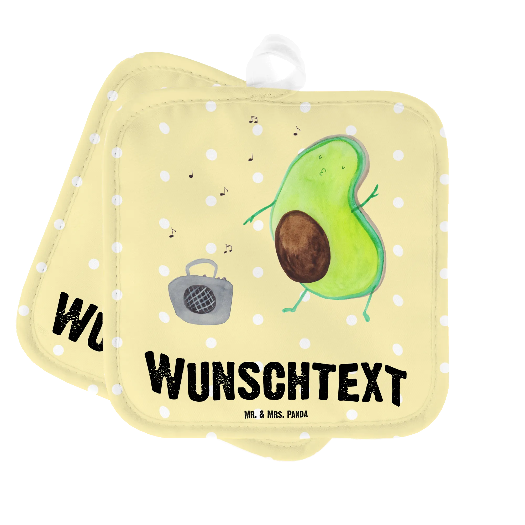 Die personalisierten Topflappen "Avocado tanzt" aus der Avocado Kollektion von Mr. & Mrs. Panda sind das perfekte Geschenk für alle Avocado-Liebhaber und Freunde gesunder Ernährung! 🌱 Mit einem niedlichen Motiv, das eine tanzende Avocado vor einem Ghettoblaster zeigt, bringen diese Topflappen gute Laune in jede Küche.
