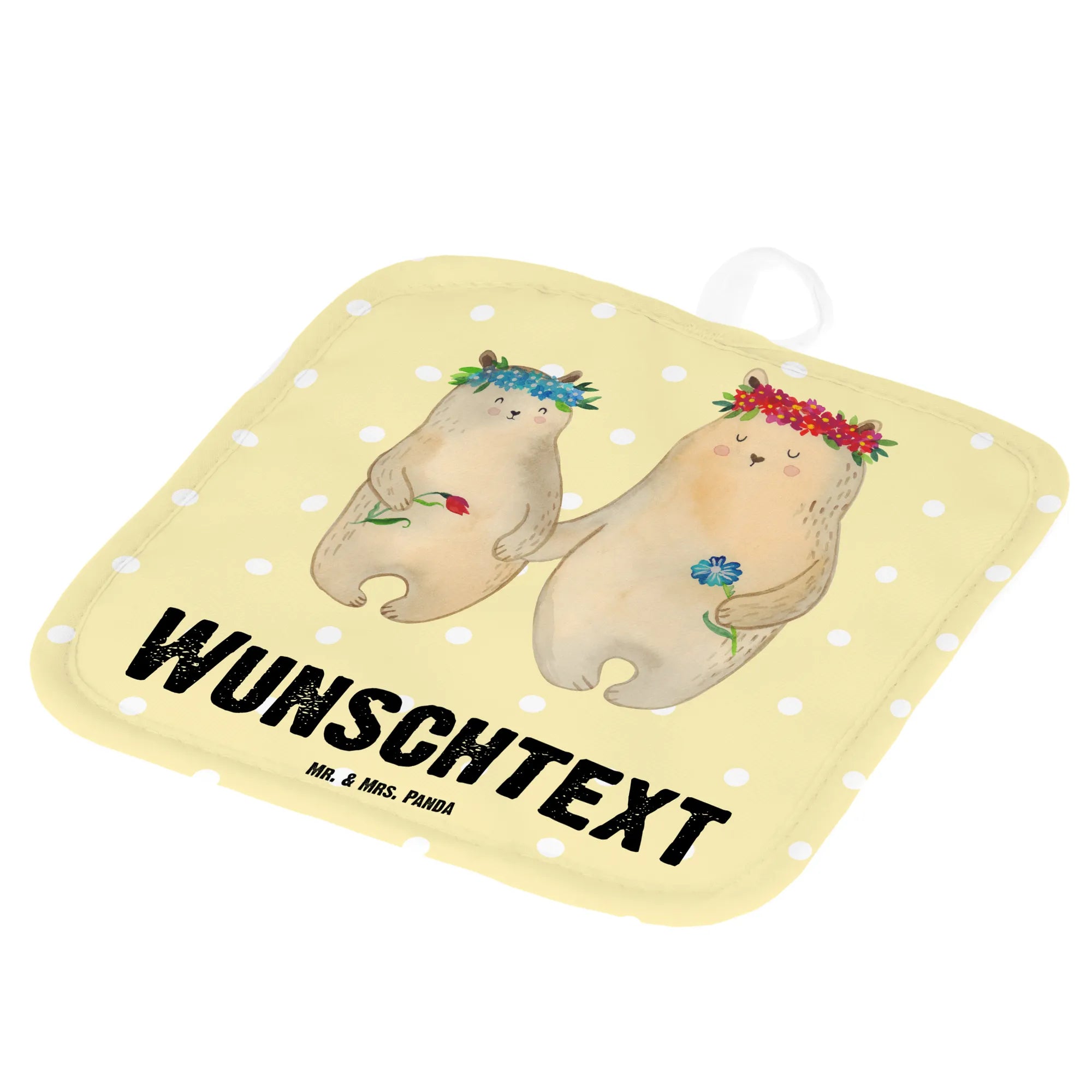 Hochwertige, personalisierte Topflappen mit dem zauberhaften Motiv "Bären mit Blumenkranz" sind das perfekte Geschenk für die beste Mama!