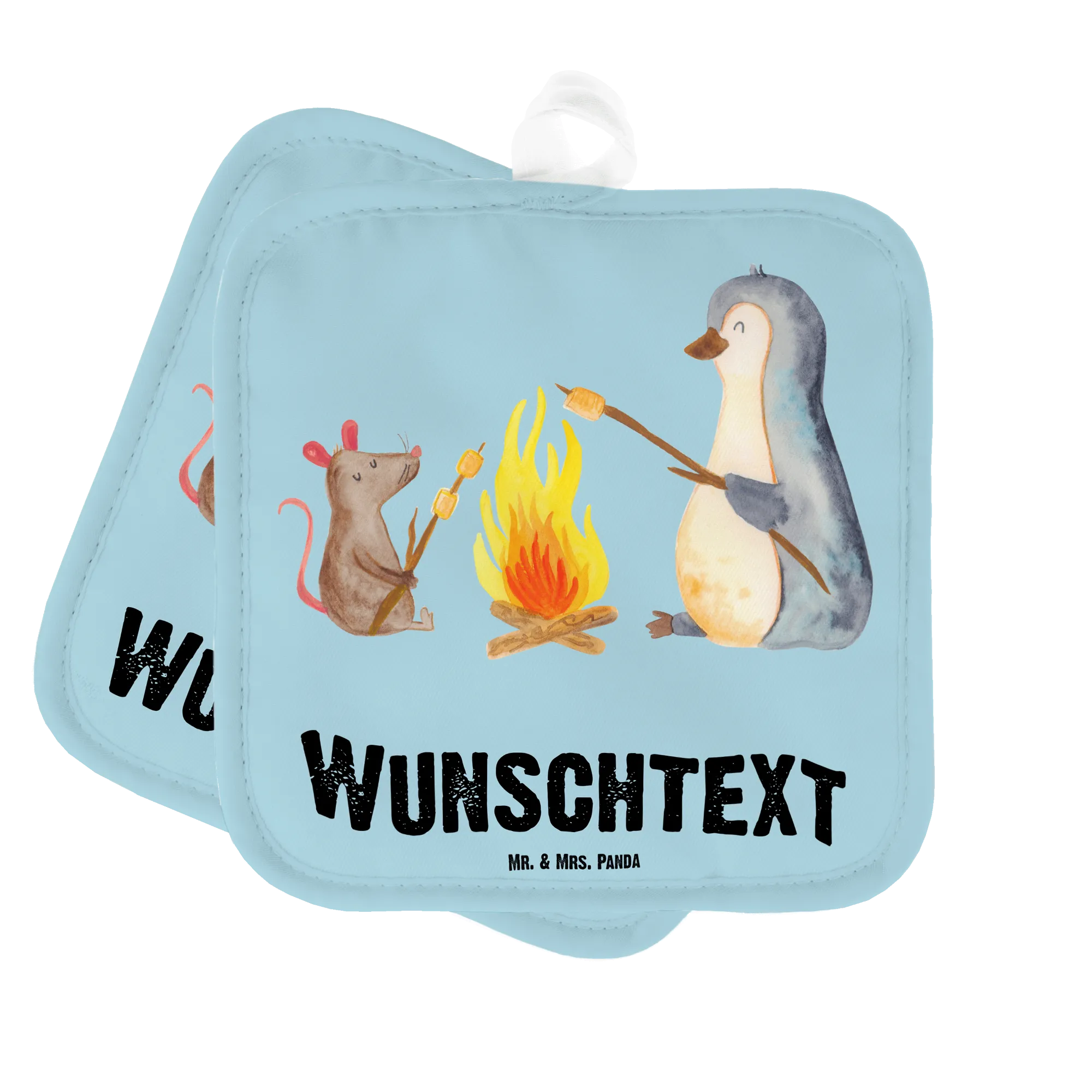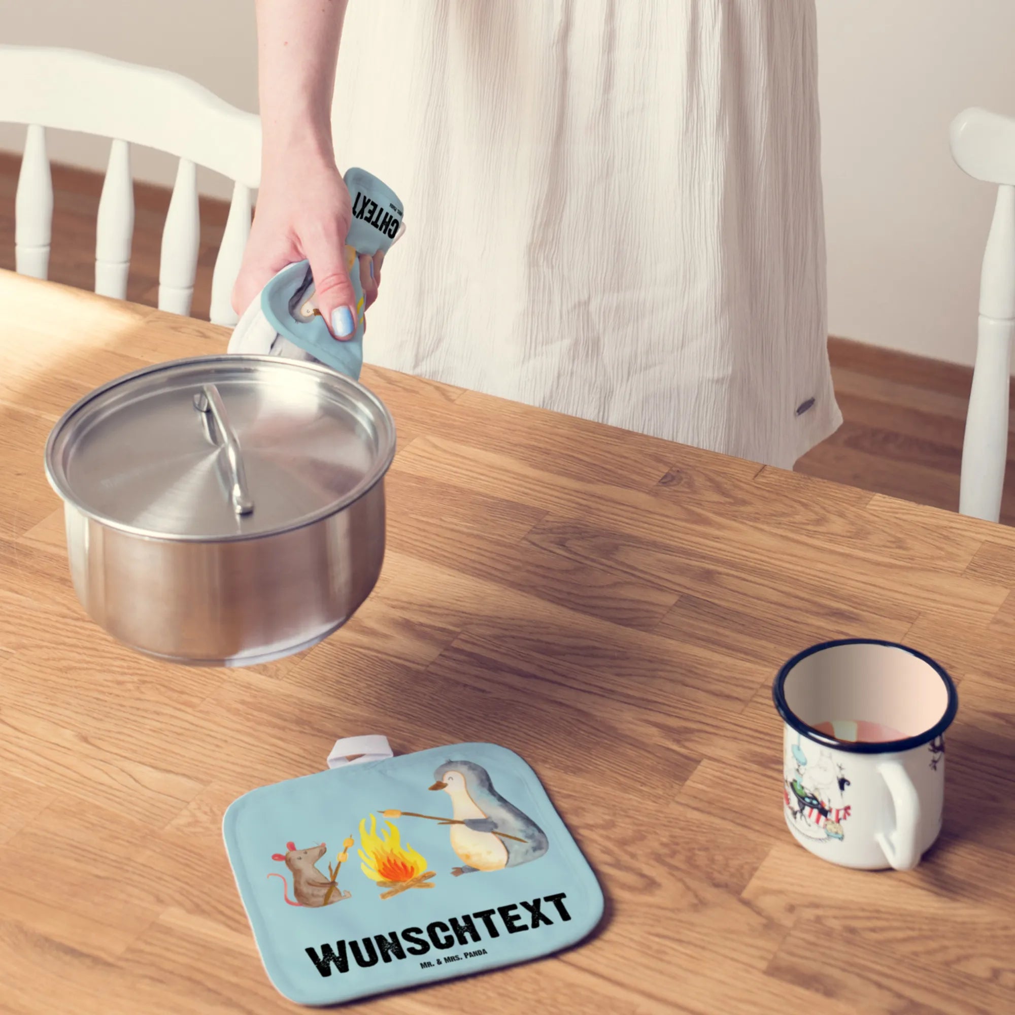 Personalisierte Topflappen Pinguin Lagerfeuer