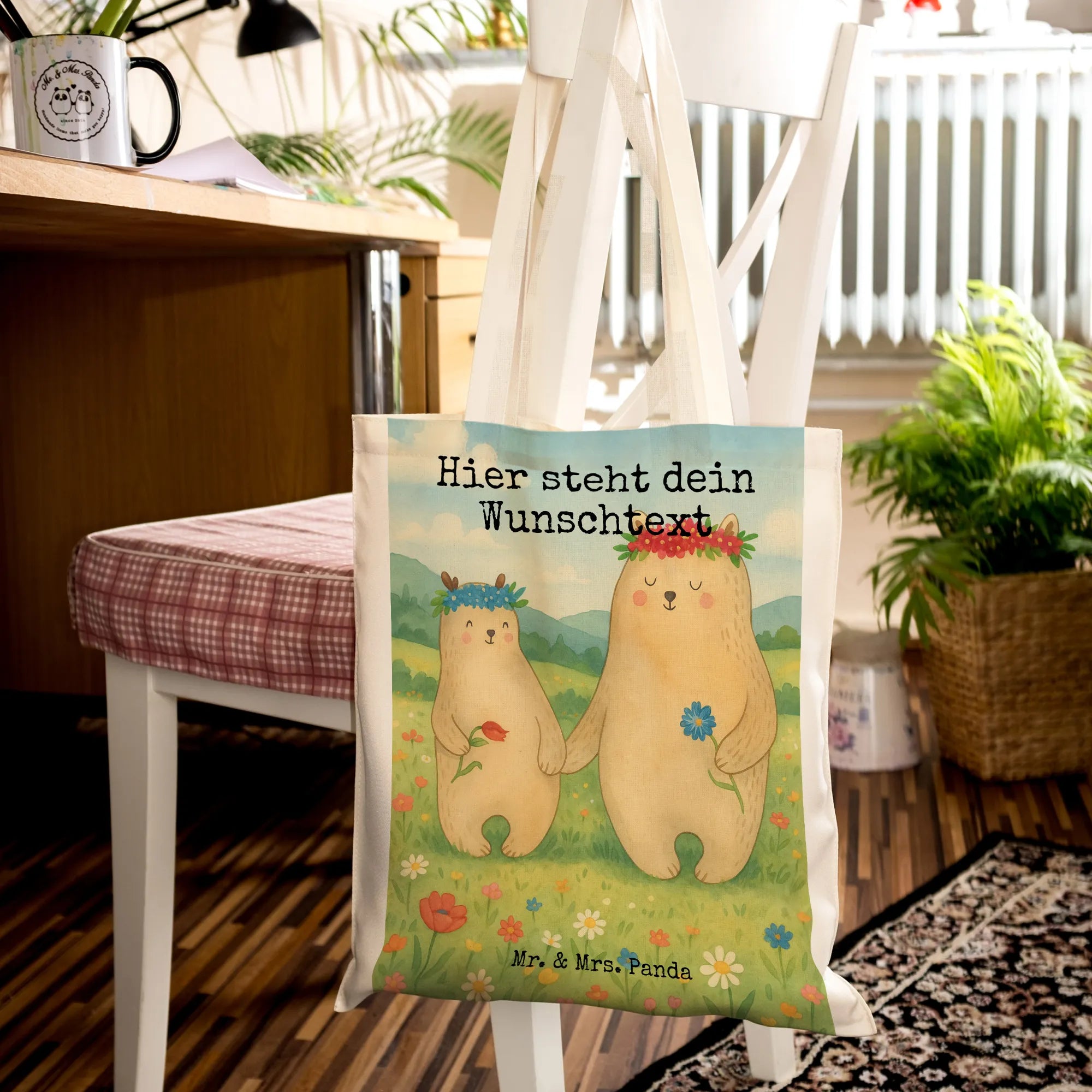 Personalisierte Tragetasche Bären mit Blumenkranz Design