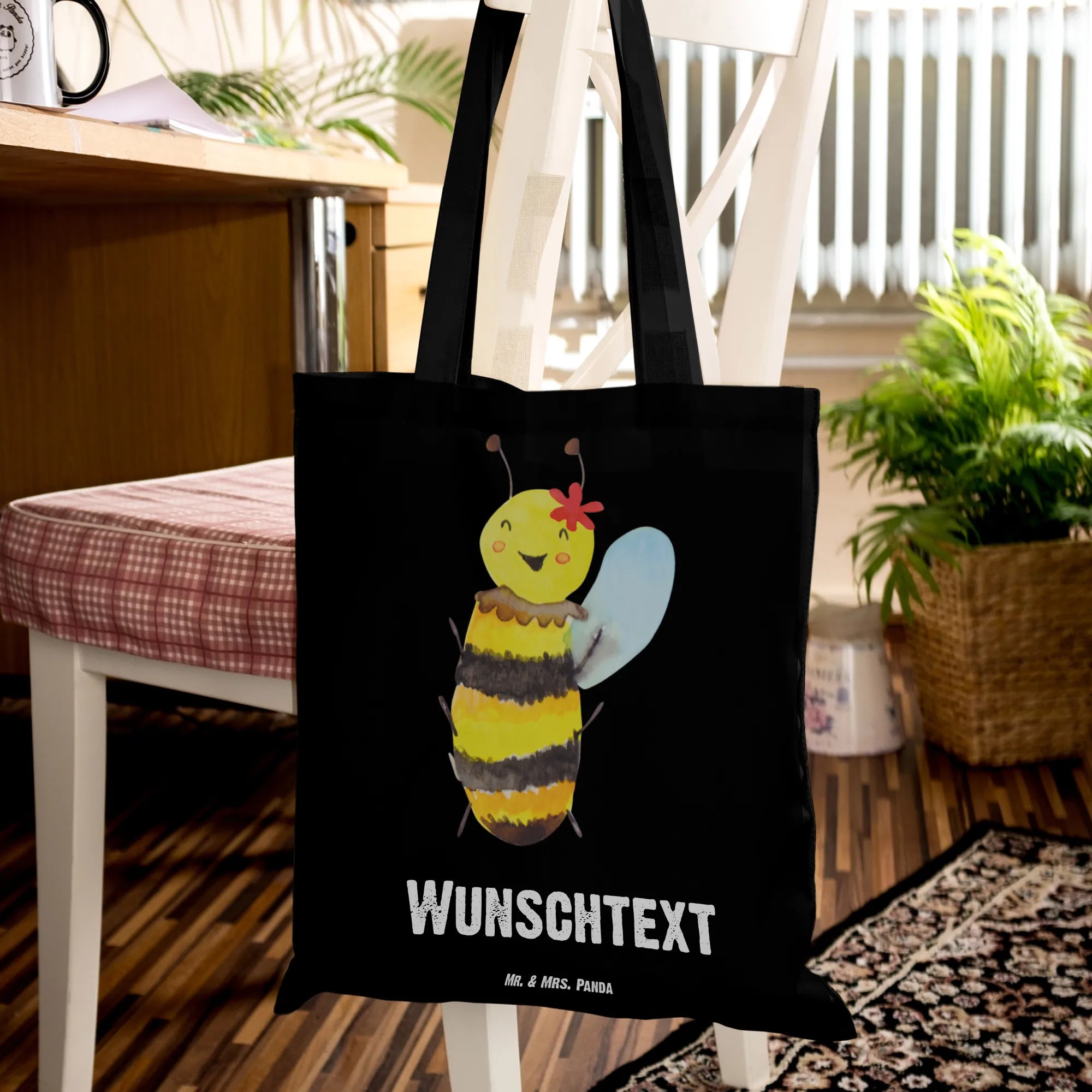 Handgezeichnetes Design: Jedes Motiv der Bienen Kollektion wurde liebevoll von Mrs. Panda als Aquarell entworfen. Der hochwertige Druck von Mr. & Mrs. Panda lässt das Motiv auf dem schwarzen Hintergrund besonders lebendig wirken und zaubert Dir und anderen ein Lächeln ins Gesicht. Perfekt als Personalisierte Tasche oder Statementbeutel mit Namen.