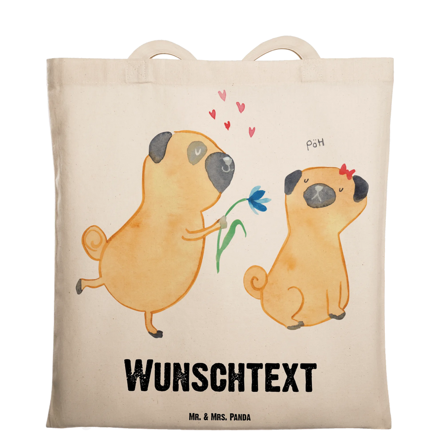 Personalisierte Tragetasche Mops verliebt - Transparent