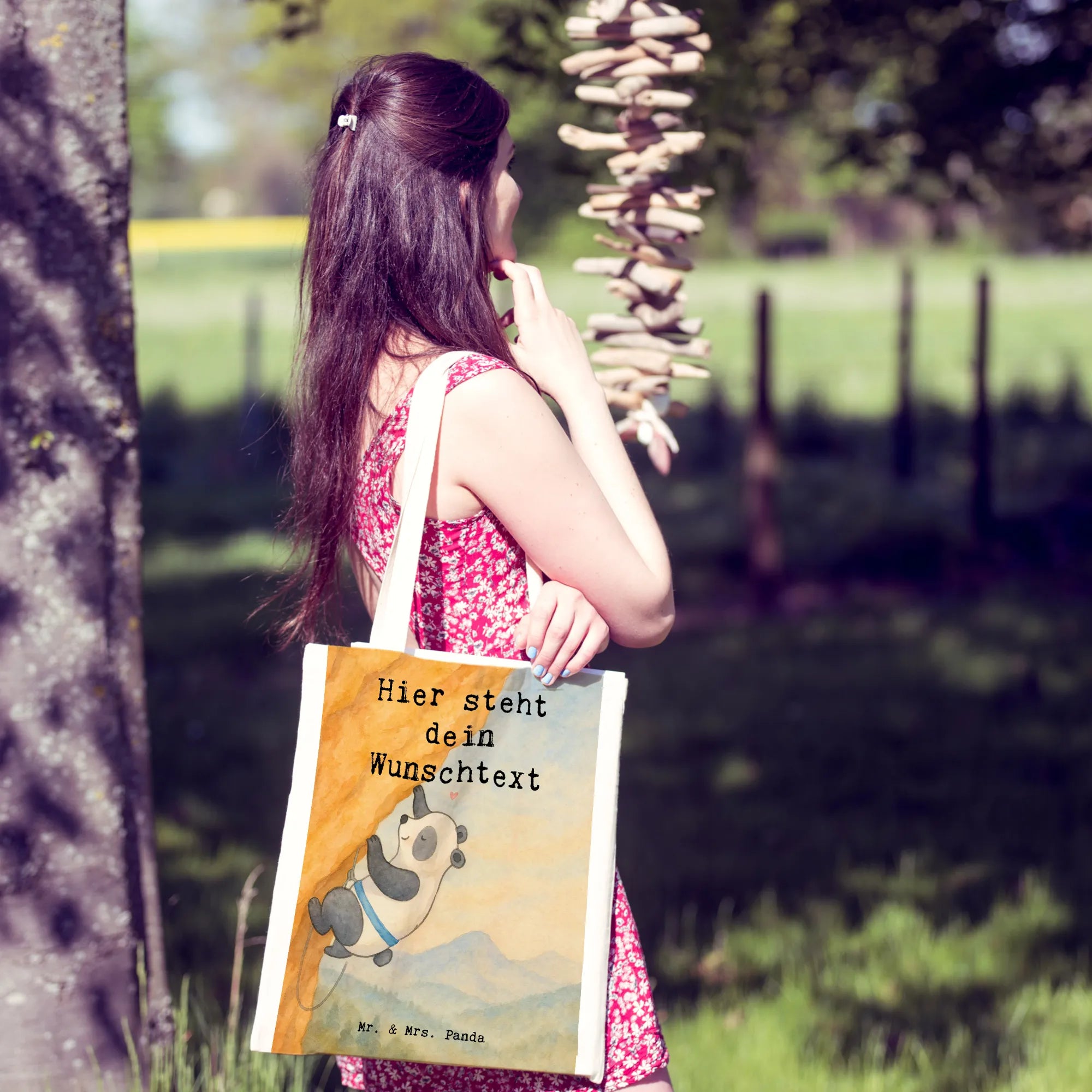 Personalisierte Tragetasche Panda Klettern Design