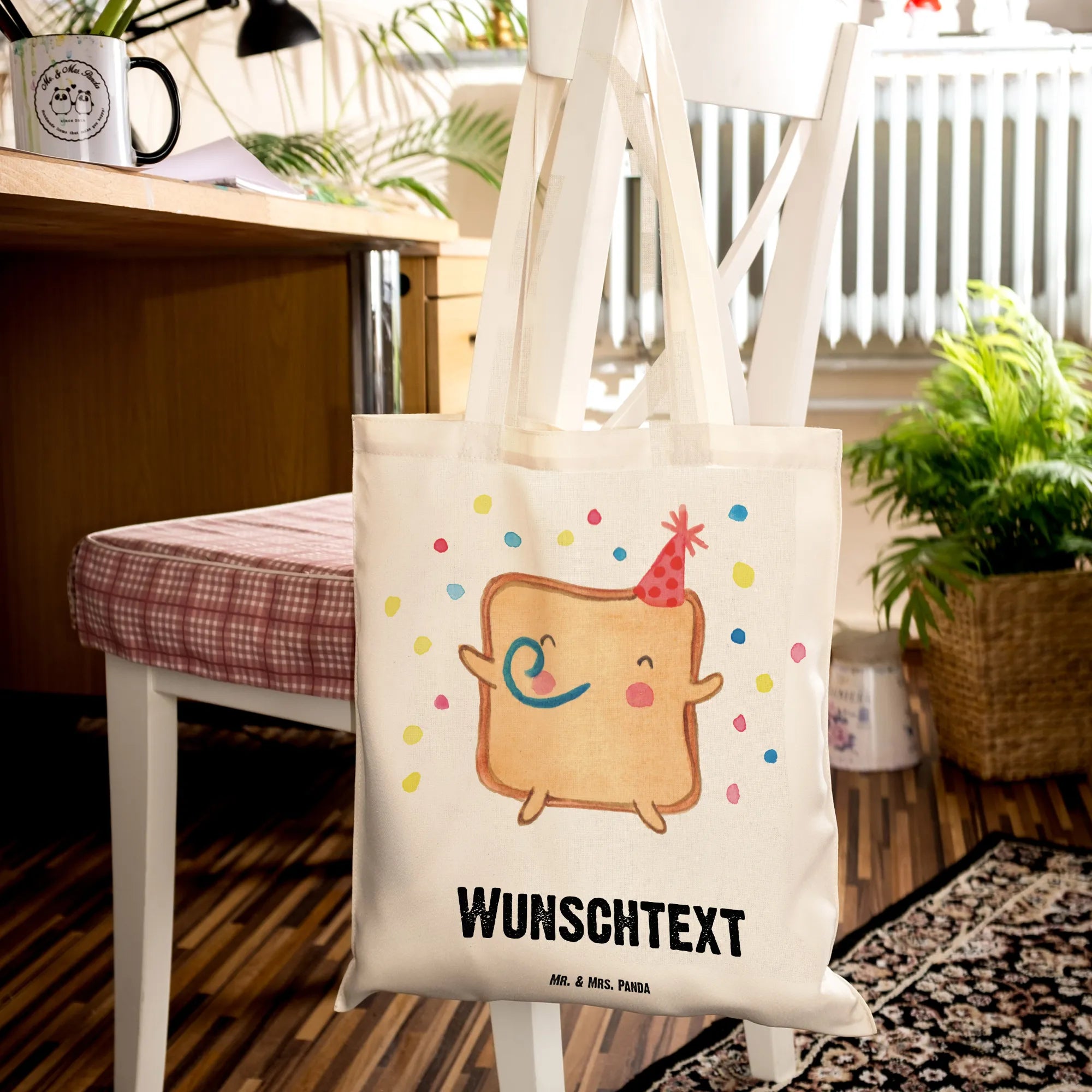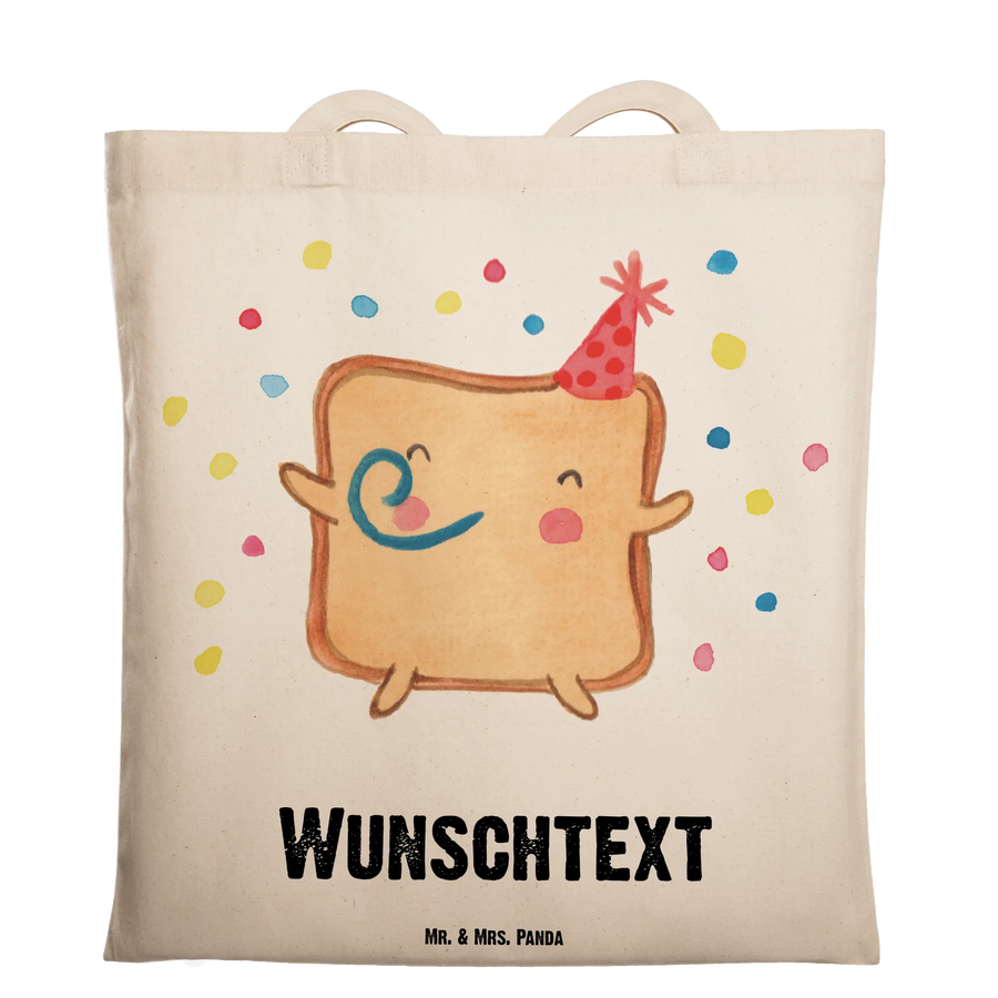 Diese wunderbare Tasche aus 100% Baumwolle bietet nicht nur ausreichend Platz für all deine Einkäufe, sondern sorgt auch dafür, dass du deiner kreativen Ader freien Lauf lassen kannst, indem du sie mit einem Namen oder Wunschtext personalisieren lässt. Das fröhliche Design zeigt einen lächelnden Toast mit einem Partyhut, umgeben von bunten Konfetti-Punkten, und bringt garantiert eine fröhliche Stimmung in jeden Tag!