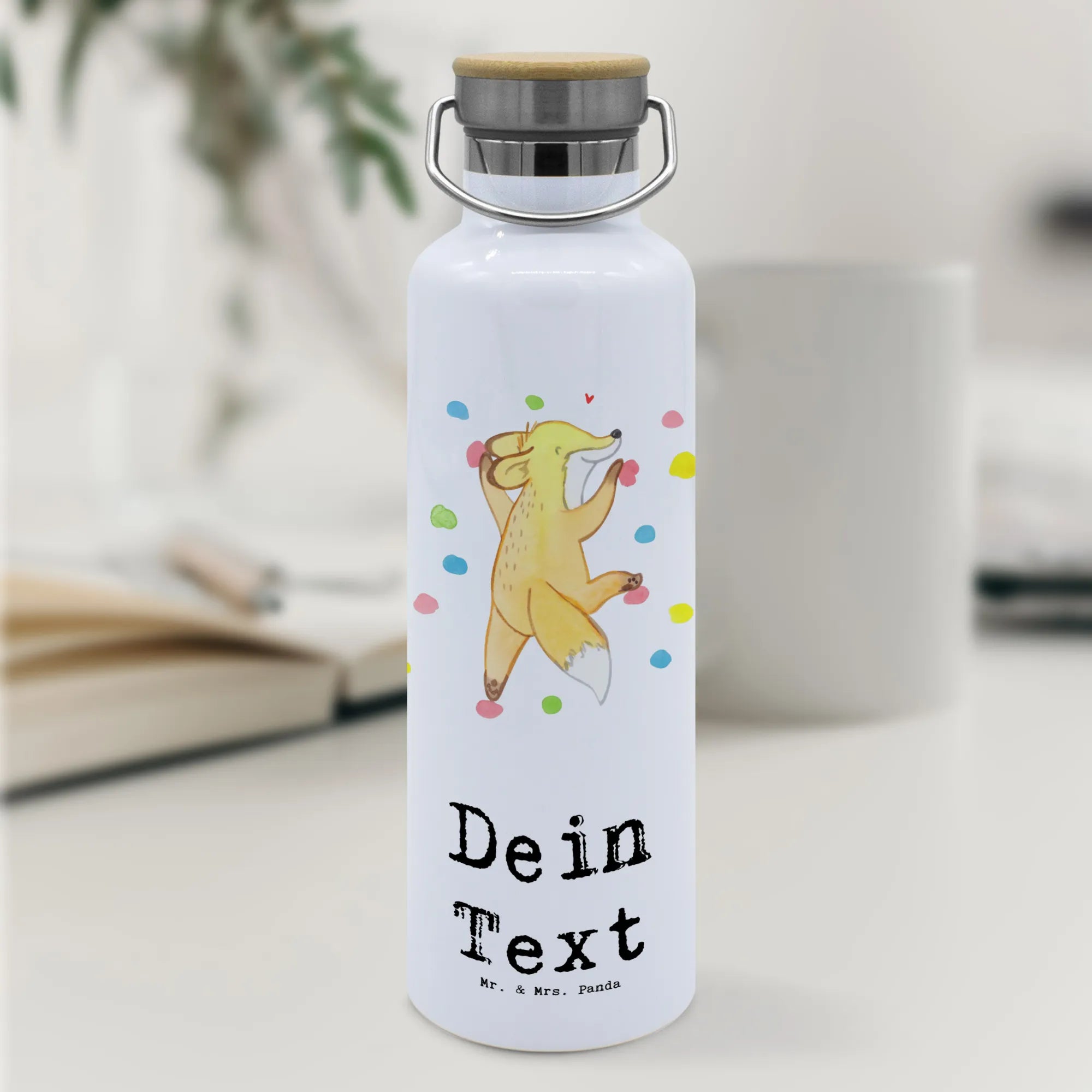 Mit deinem Wunschtext oder Namen personalisierbar, wird sie zum Unikat und ist ideal, um deinen individuellen Stil auszudrücken. Sie fasst 750 ml und ist dank des doppelwandigen Designs perfekt isoliert – für heiße und kalte Getränke sowie sogar kohlensäurehaltige Erfrischungen. Der wunderschöne Fuchs, der begeistert in der Kletterhalle springt, bringt zudem gute Laune und Motivation bei jeder Benutzung.