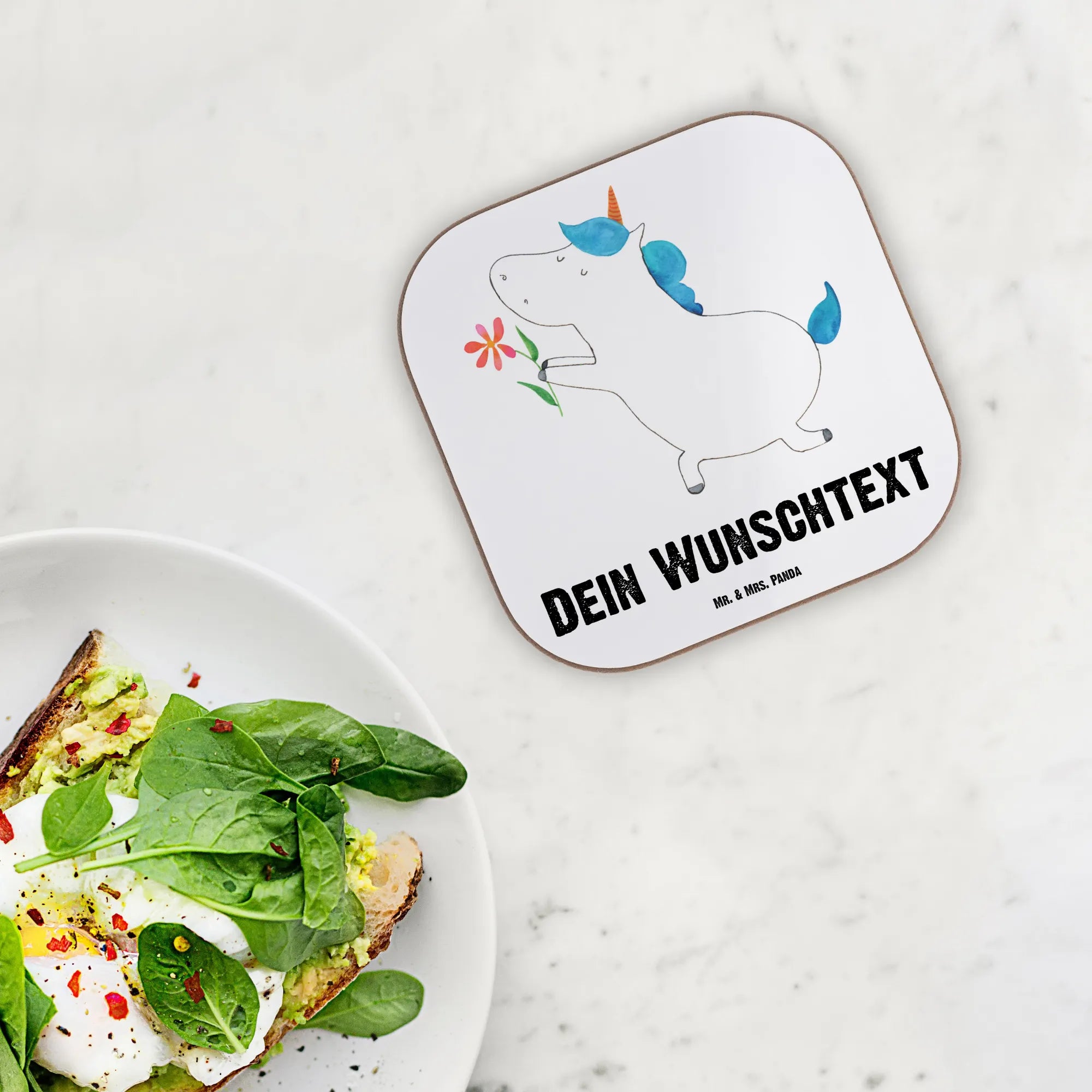 Du liebst die zauberhafte Welt der Einhörner? Dann ist unser personalisierten Untersetzer mit dem wunderschönen Motiv "Einhorn Blume" aus der Einhorn-Kollektion genau das richtige Geschenk für dich oder deine Liebsten!