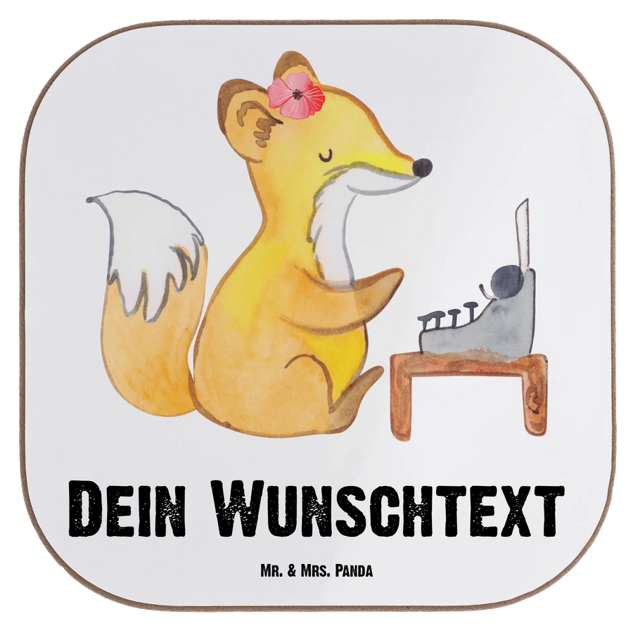 Mit seinem fröhlichen Motiv eines süßen Fuchses, der eine Blume im Haar trägt und vor einer Schreibmaschine sitzt, bringt dieser Untersetzer ein Lächeln in jeden Arbeitstag. Egal ob zu besonderen Anlässen oder als kleine Aufmerksamkeit zwischendurch, dieser Untersetzer ist ein tolles Mitbringsel und eine schöne Geschenkidee.