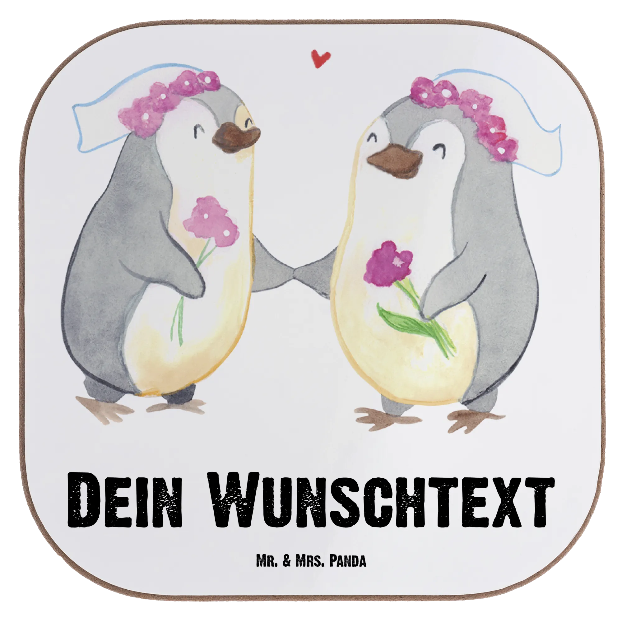 Der personalisierte Untersetzer "Pinguin Pärchen Lesbian Pride" von Mr. & Mrs. Panda ist das perfekte Geschenk für Paare, die ihre Liebe anlässlich ihrer Hochzeit zelebrieren möchten. Mit diesem einzigartigen Untersetzer setzt du ein Zeichen für Liebe und Stolz, denn das bezaubernde Motiv der Pinguinbräute, die sich liebevoll an den Händen halten, strahlt pure Freude aus. Der Untersetzer ist nicht nur ein stylisches Accessoire für den Esstisch oder die Bar, sondern auch ein ganz persönliches Andenken.