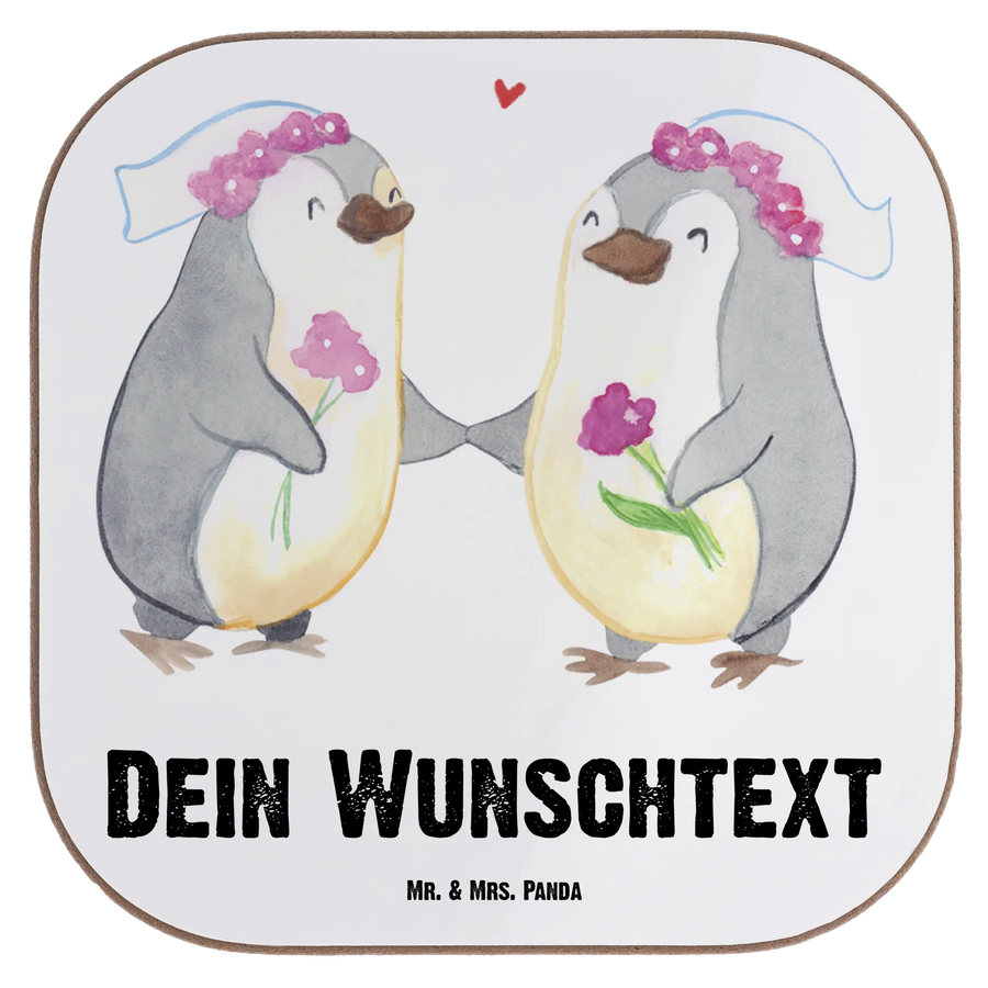 Personalisierte Untersetzer Pinguin Pärchen Lesbian Pride – Mr. & Mrs. Panda