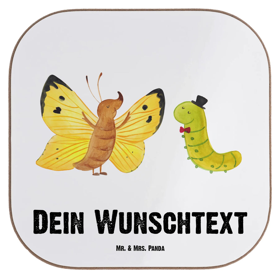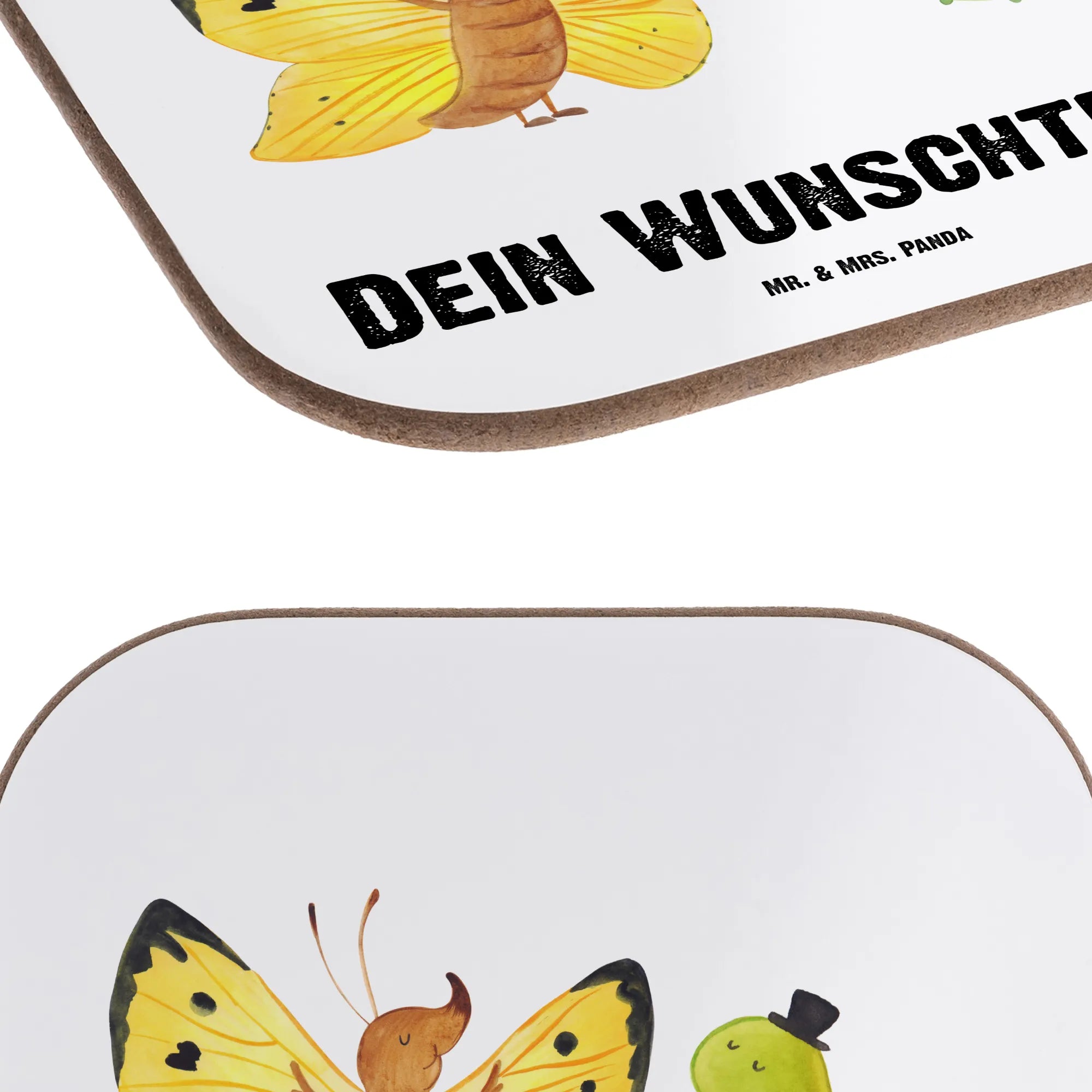 Personalisierte Untersetzer Raupe & Schmetterling - Weiß