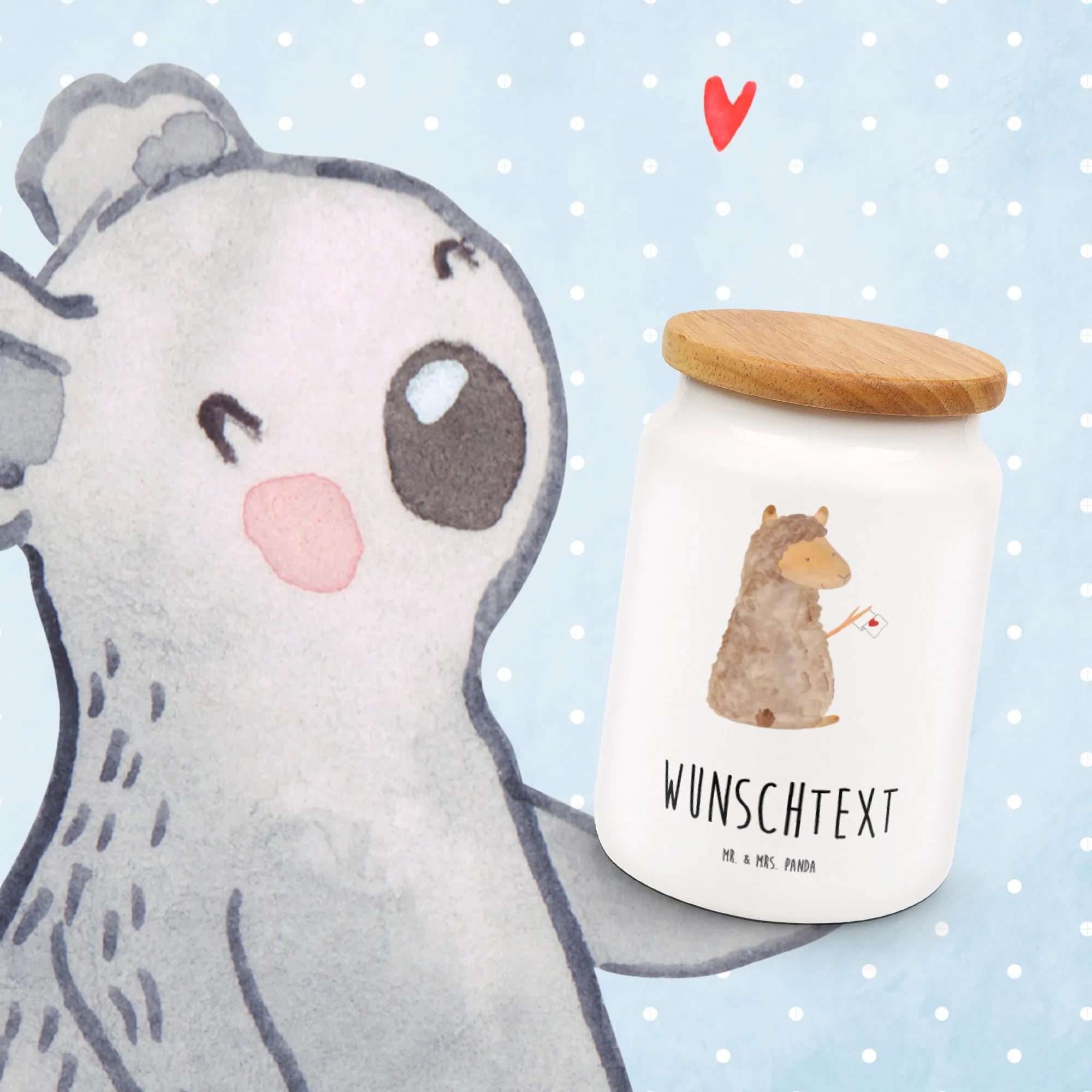 Die personalisierte Vorratsdose Alpaka Fahne von Mr. & Mrs. Panda ist der perfekte Begleiter für alle, die ihr Zuhause mit etwas Besonderem verschönern möchten. Mit ihrem fröhlichen Alpaka-Motiv und dem herzlichen Spruch "Eigentlich will ich mich benehmen, aber die Versuchungen sind immer zu groß." zaubert diese Dose jedem ein Lächeln ins Gesicht. Egal, ob du sie für dich selbst bestellst oder als liebevolles Geschenk für einen besonderen Menschen – diese Vorratsdose ist ein wahrer Hingucker!