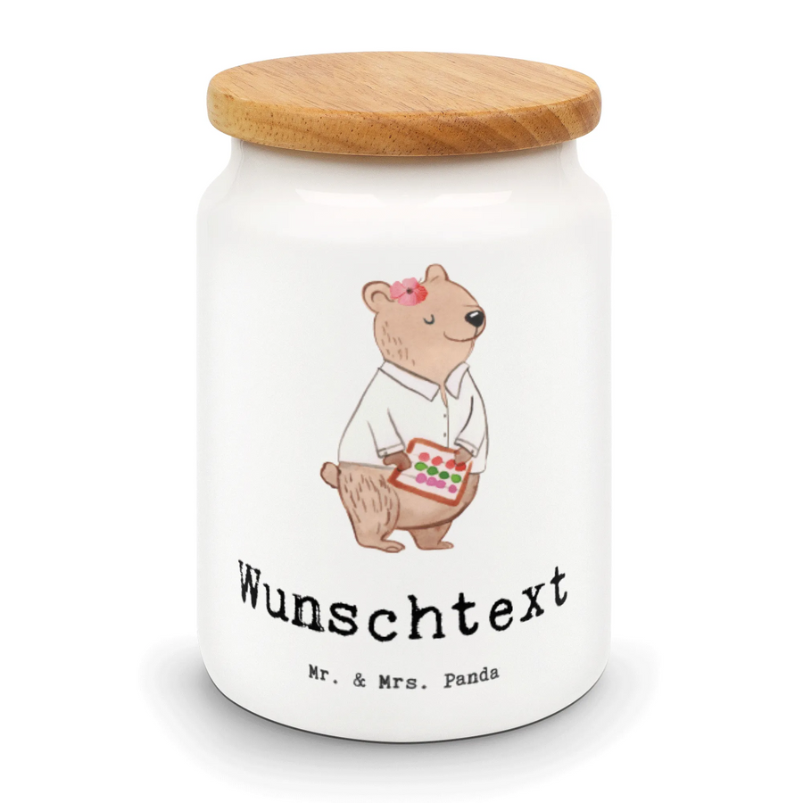 Die personalisierte Vorratsdose "Bankangestellte mit Herz" von Mr. & Mrs. Panda ist das ideale Geschenk für all jene, die in der spannenden Welt der Finanzen tätig sind. Diese liebevoll gestaltete Keramikdose, die speziell für Bankangestellte kreiert wurde, ist nicht nur funktional, sondern auch ein echter Blickfang. Ob zur bestandenen Prüfung, zum Arbeitsjubiläum oder zur Pensionierung – mit dieser Keksdose bringst du Freude in den Arbeitsalltag! Sie hat eine Höhe von 145 mm und einen Durchmesser von 95 mm, ideal, um Lieblingssnacks oder Büroutensilien stilvoll aufzubewahren.