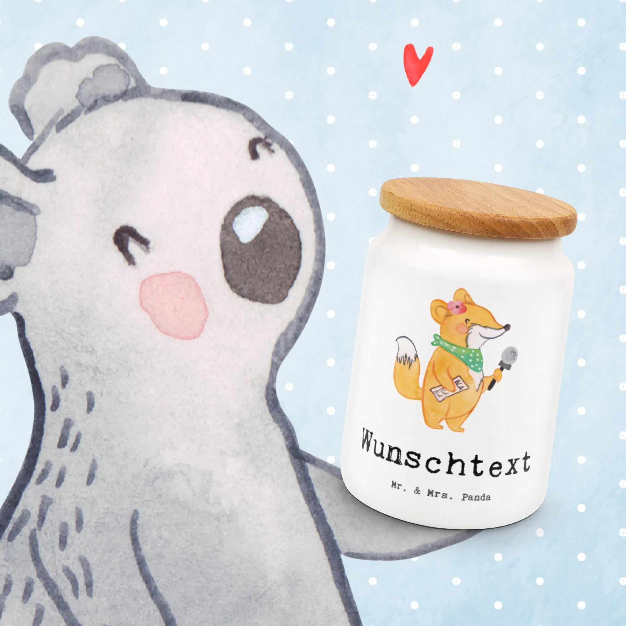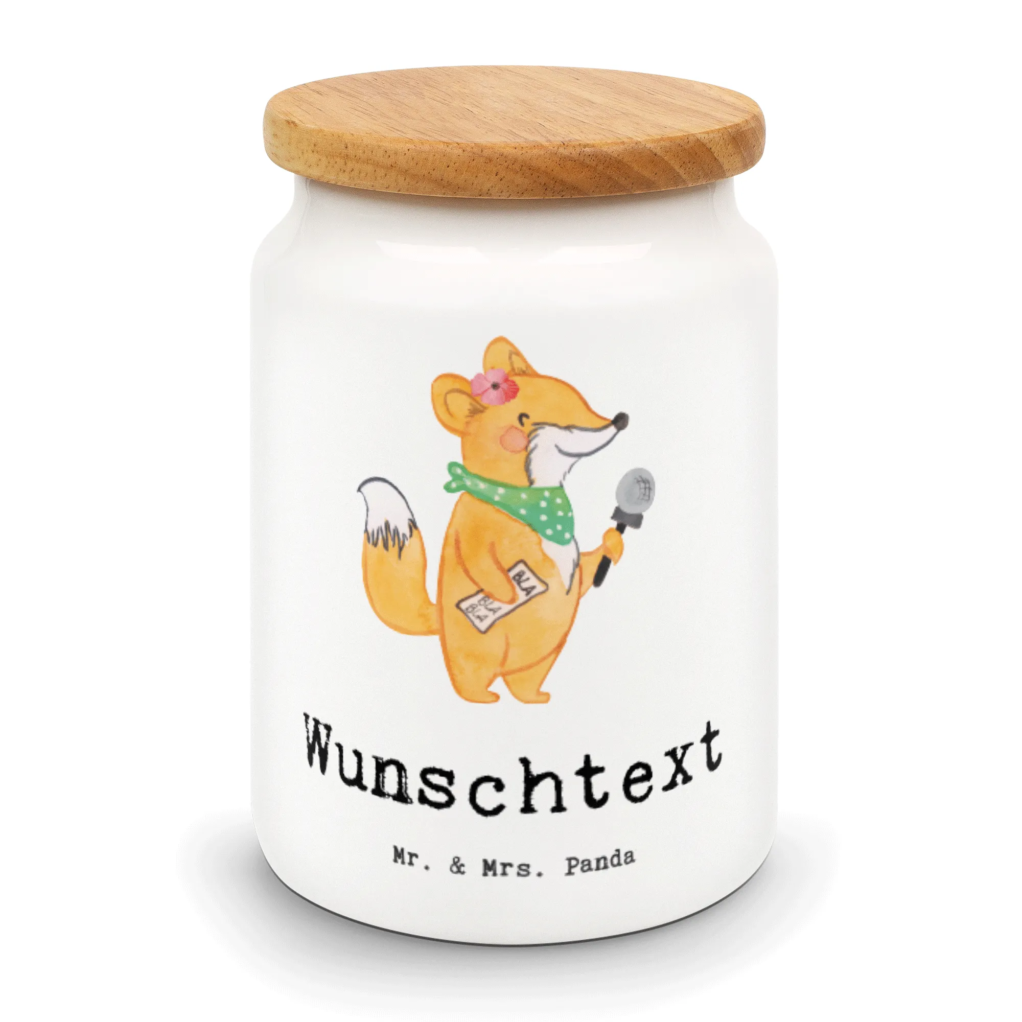 Du suchst ein Geschenk, das Herz und Alltag verbindet? Unsere Personalisierte Vorratsdose „Journalistin mit Herz" aus der Berufe-Kollektion von Mr. & Mrs. Panda ist genau das. Das zauberhafte Fuchs-Motiv mit Mikrofon und der freche Spruch „Du bist nur ein halber Mensch, wenn du keine Journalistin bist." bringen Freude in Küche und Büro. 🎁